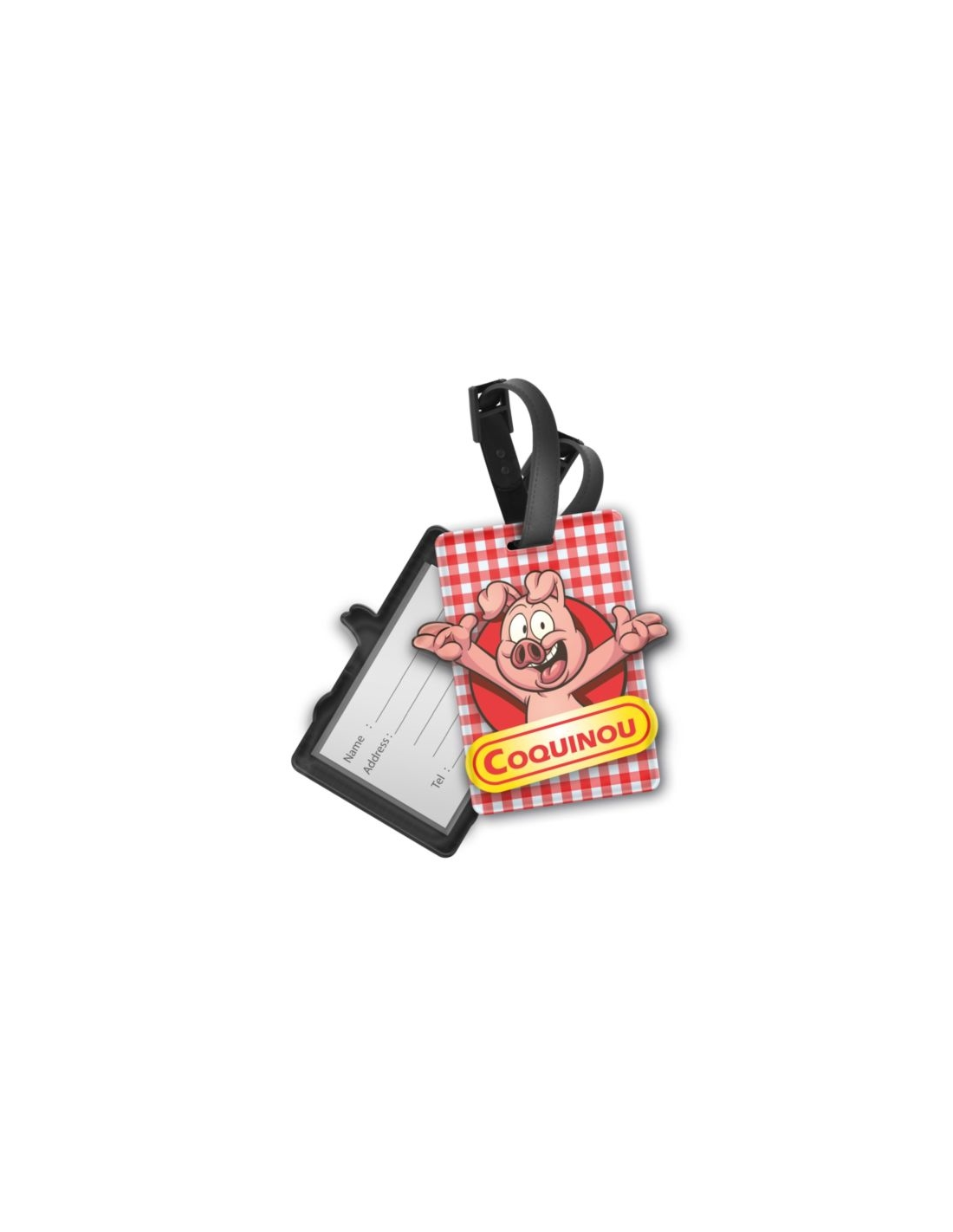 Étiquette à bagage en PVC flex avec attache. Forme standard rectangulaire (possibilité de forme spéciale sur devis).