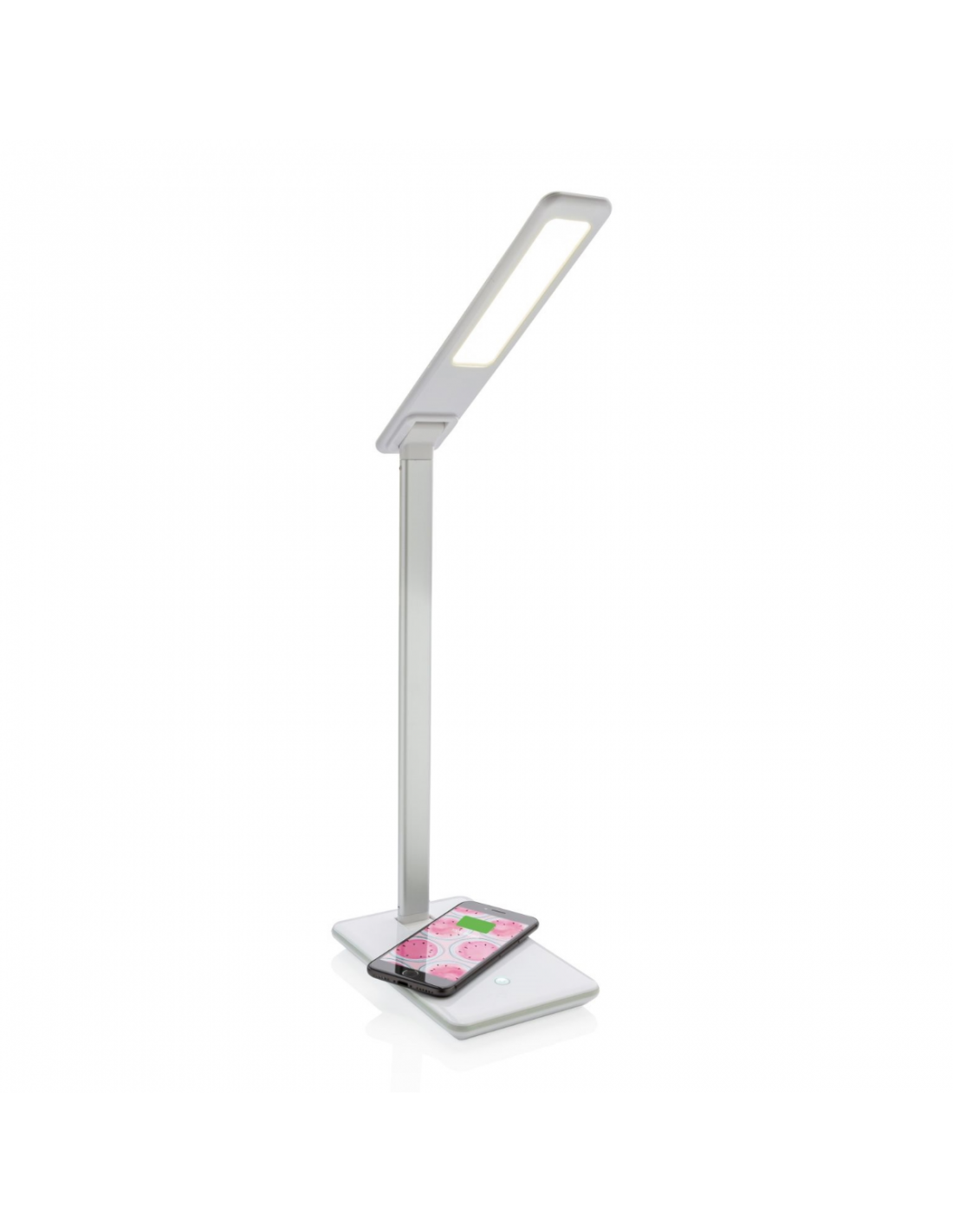 Lampe en ABS avec chargeur 5W intégrée. Pour charger votre téléphone posez-le simplement sur le socle de la lampe. Le chargement de la lampe se fait simplement avec un câble USB. L'activation de la lampe se fait par la touche tactile. Temps d'utilisation de la lampe 50.000 heures. Câble micro USB de 150 cm inclus. Chargement sans fil compatible avec tous les appareils supportant la recharge à induction (Qi) comme Android dernière génération, iPhone 8 et plus. Entrée : 5V/2A, Sortie induction : 5V/1A 5W.