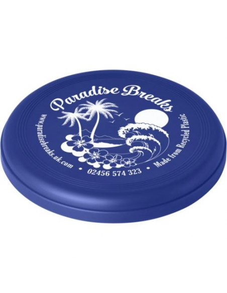 Un frisbee solide fabriqué à partir de plastique recyclé provenant des océans. Le matériau a été collecté dans un rayon de 50 km des côtes asiatiques et présente une finition mouchetée en raison de la nature du matériau recyclé. Conforme à la norme EN71.