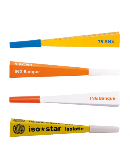 Sifflet en plastique (PS) disponible au choix en rouge, blanc, bleu, jaune, vert, orange, noir ou selon un assortiment.