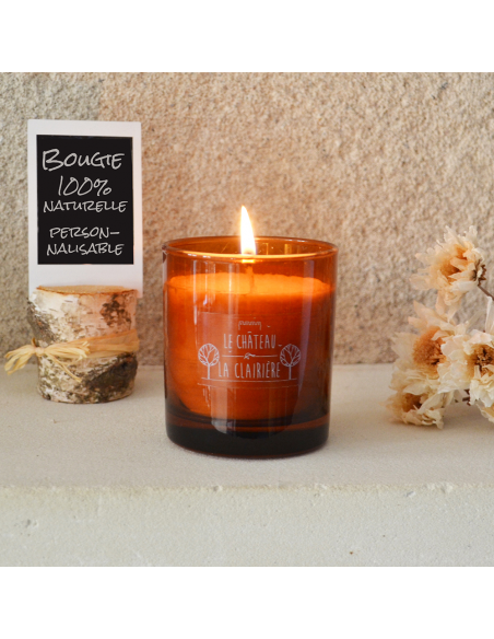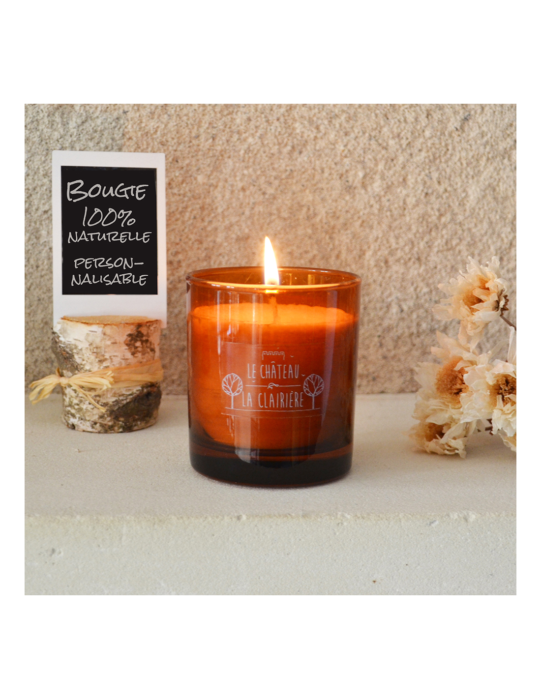 Cire végétale 100% naturelle. Pas de colorant, sans huile minérale ou huile de palme. Bougie parfumée 25h.