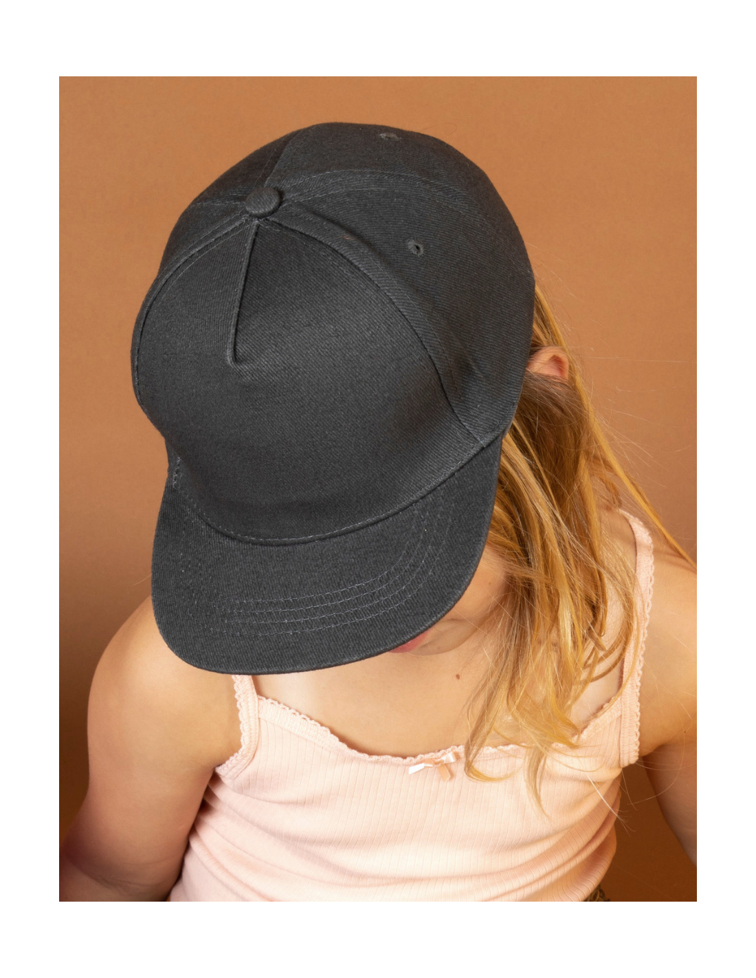 Casquette visière plate, 5 panneaux. Visière plate. Languette de réglage en plastique. Tour de tête : 53 cm.Matière : 100% coton