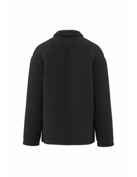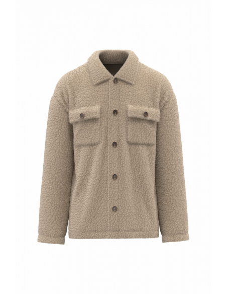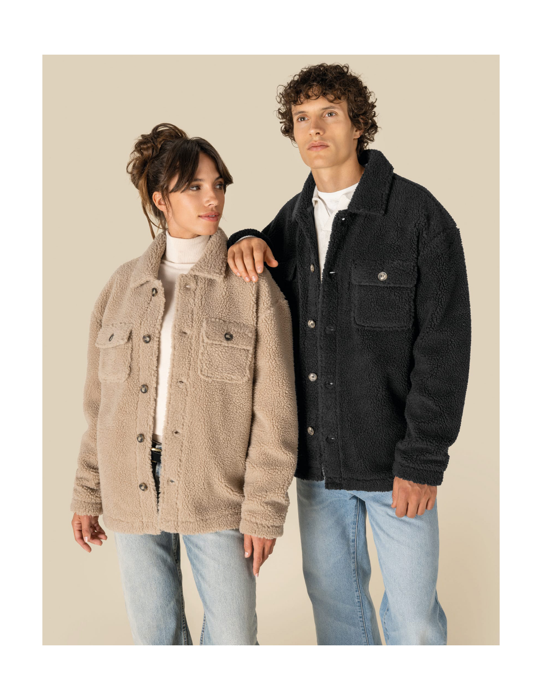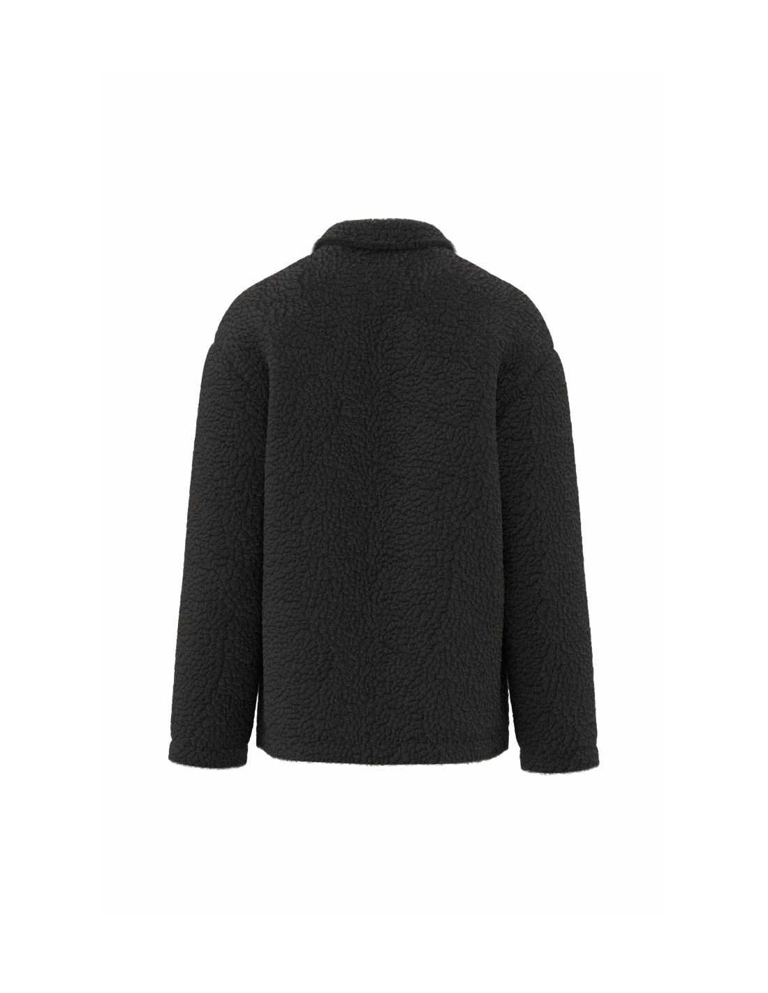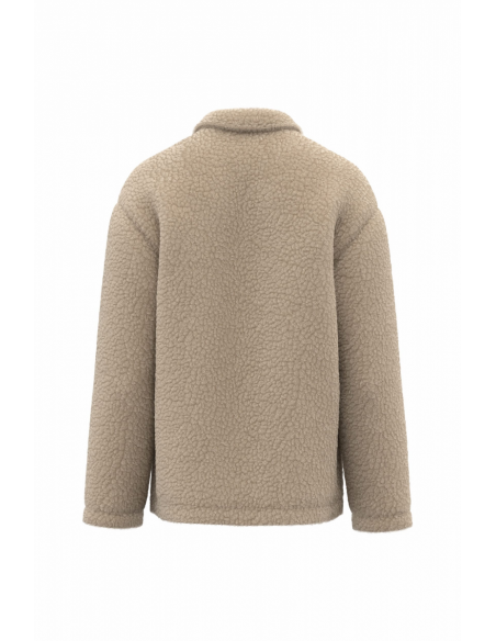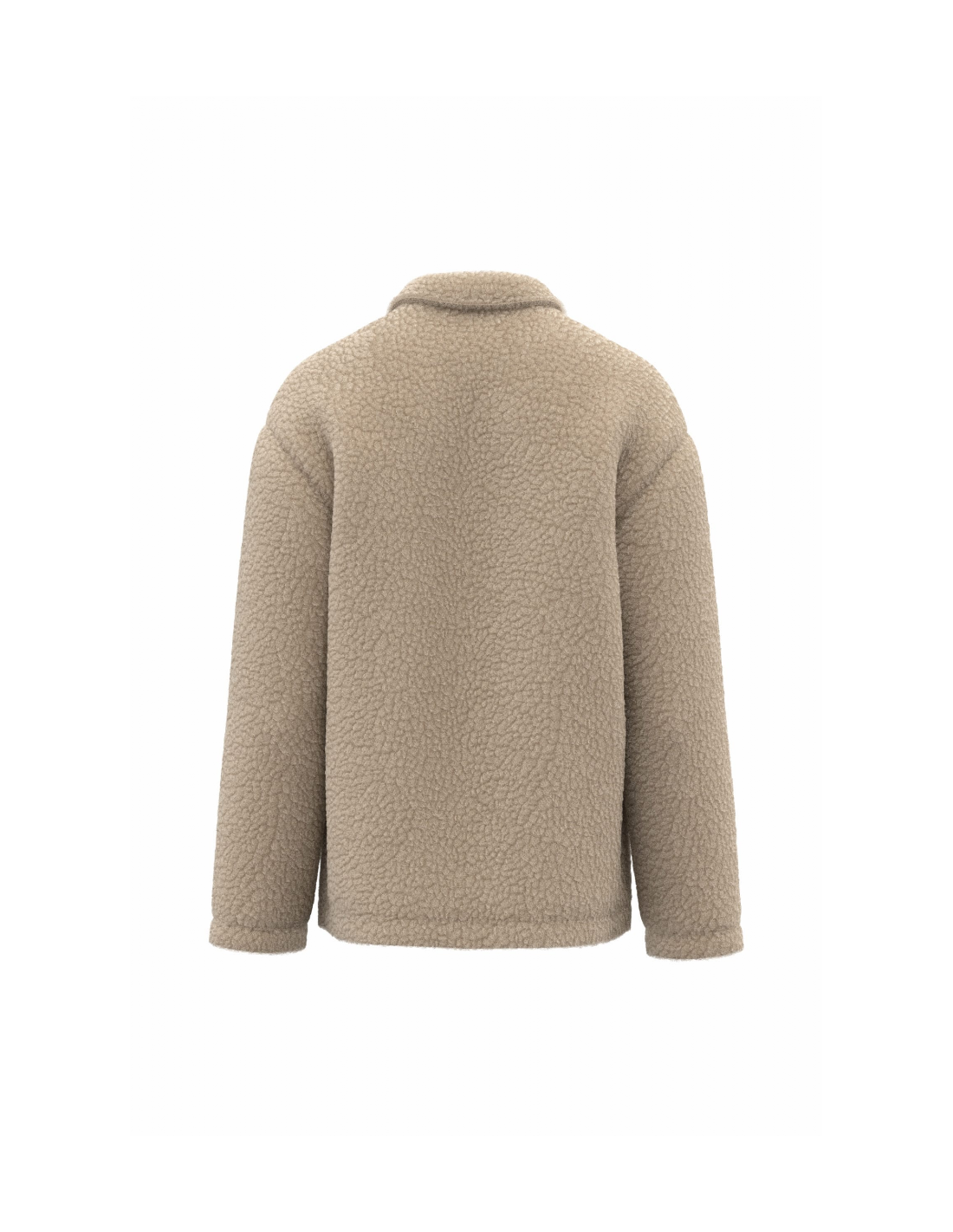 Coupe standard à épaules tombantes. Matière en sherpa avec doublure principale en jersey et doublure manches en taffetas pour un enfilage facilité. Col doublé en matière principale. Patte de boutonnage et poches poitrine à rabat fermées par des boutons en plastique effet corne. Finition intérieur col avec bande de propreté en chevron ton sur ton. Ourlet bas de manches et de vêtement avec simple surpiqûre. Zip de personnalisation intérieur en bas de vêtement.