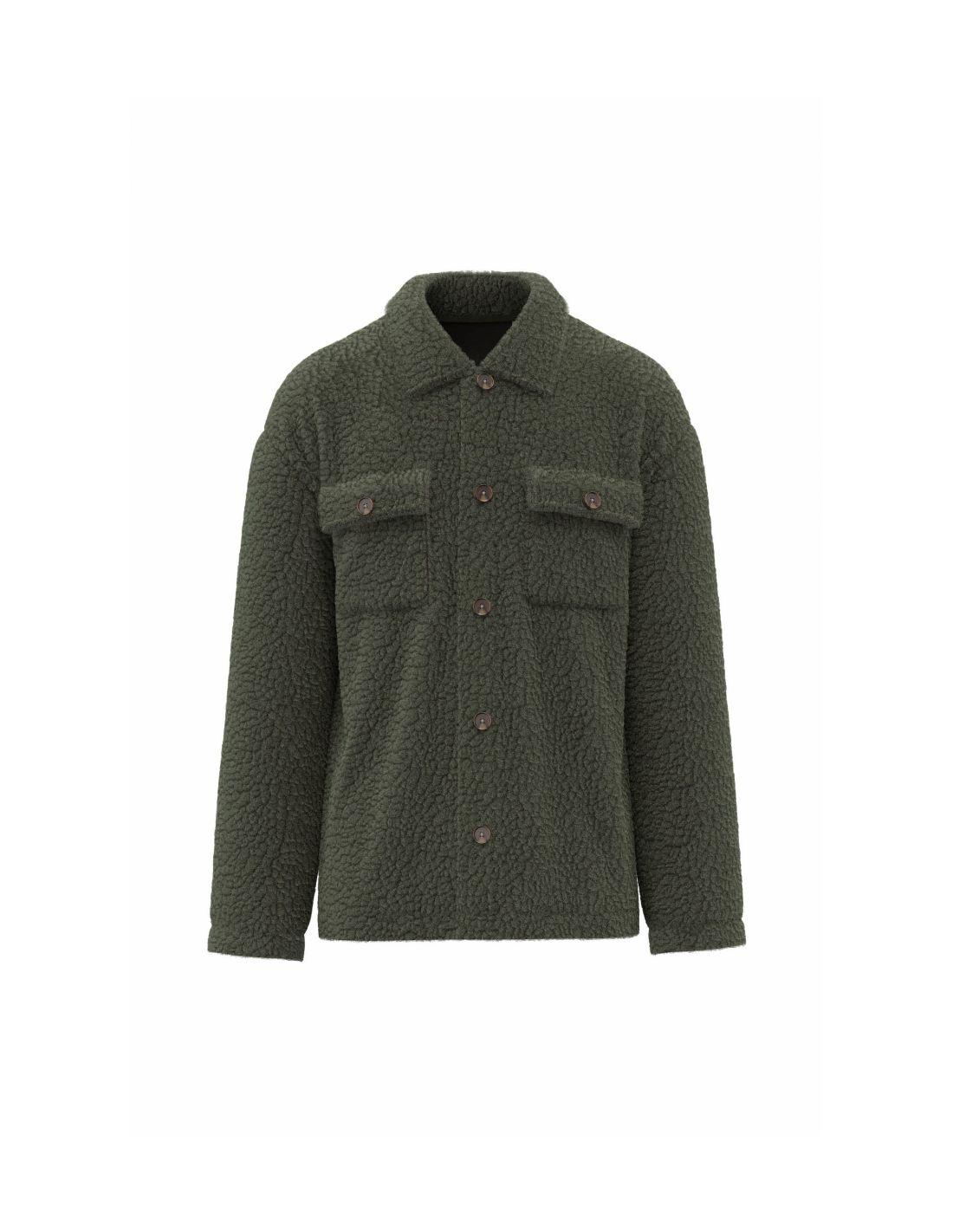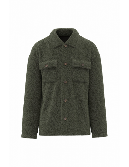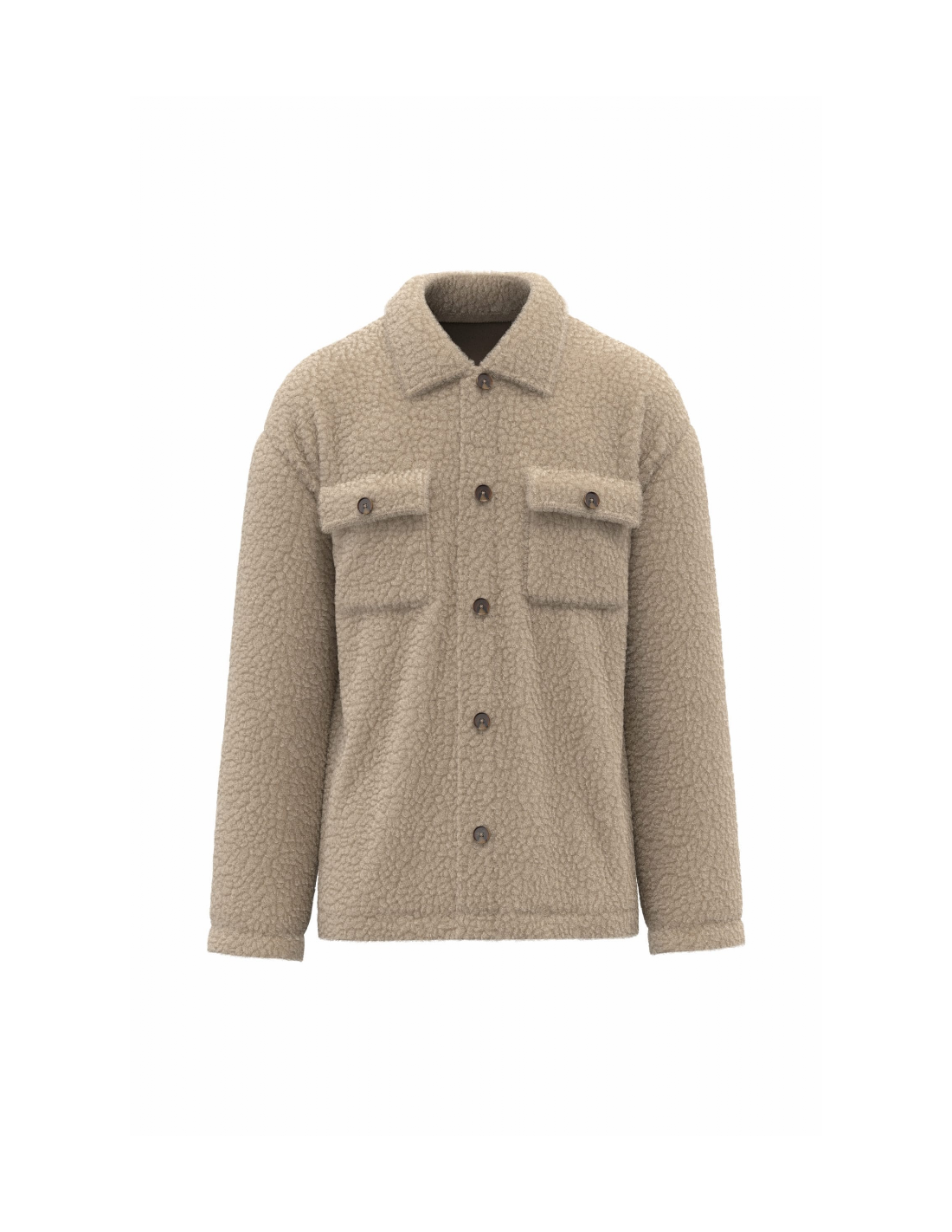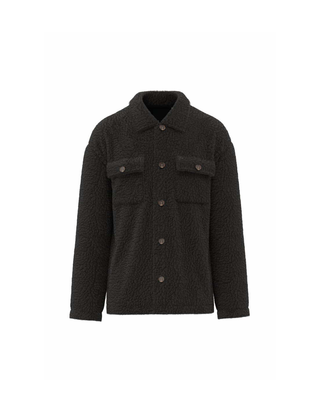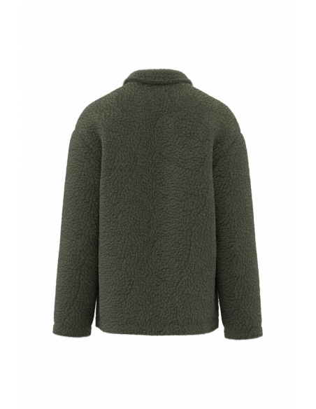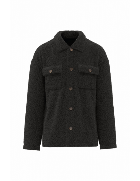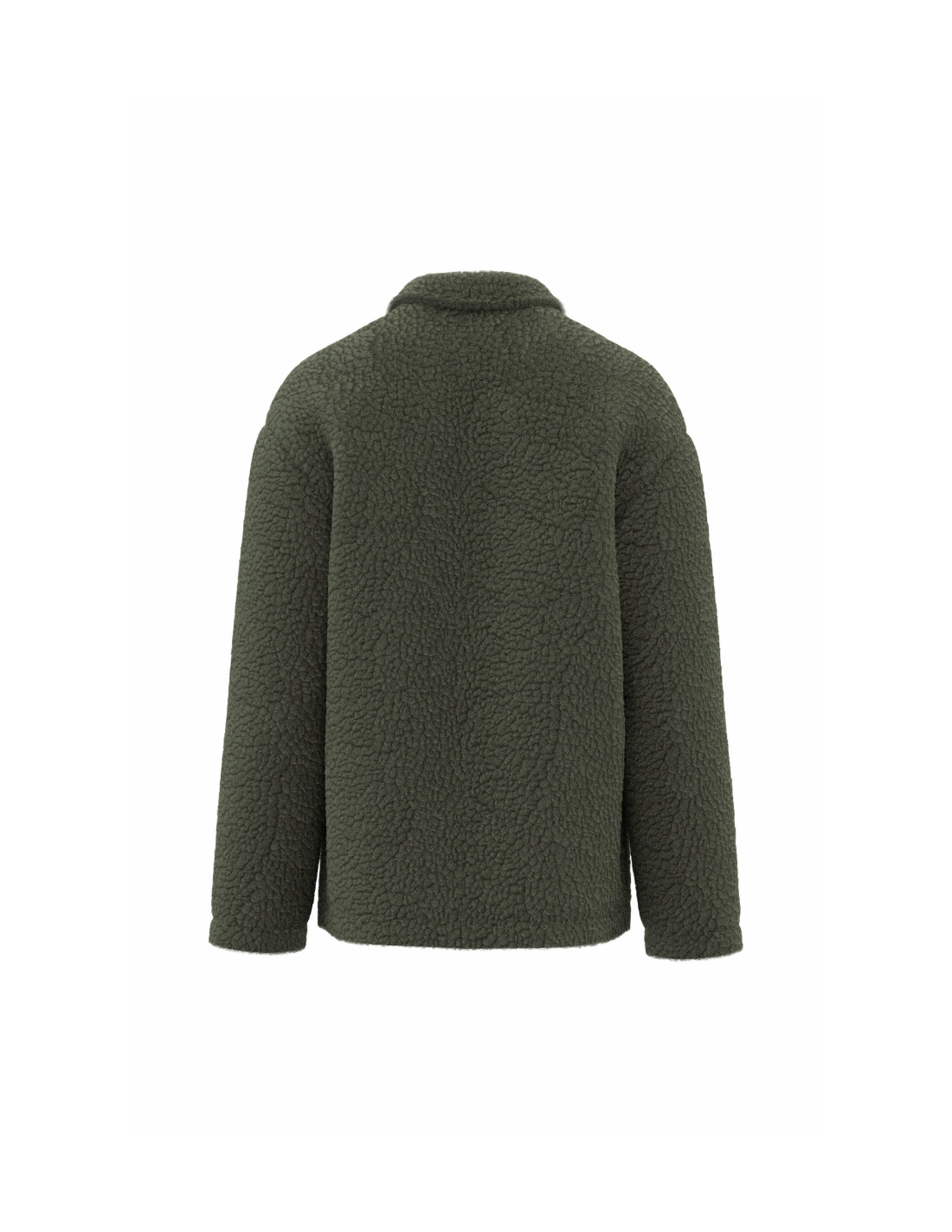 Coupe standard à épaules tombantes. Matière en sherpa avec doublure principale en jersey et doublure manches en taffetas pour un enfilage facilité. Col doublé en matière principale. Patte de boutonnage et poches poitrine à rabat fermées par des boutons en plastique effet corne. Finition intérieur col avec bande de propreté en chevron ton sur ton. Ourlet bas de manches et de vêtement avec simple surpiqûre. Zip de personnalisation intérieur en bas de vêtement.