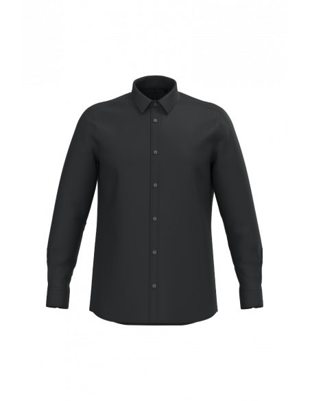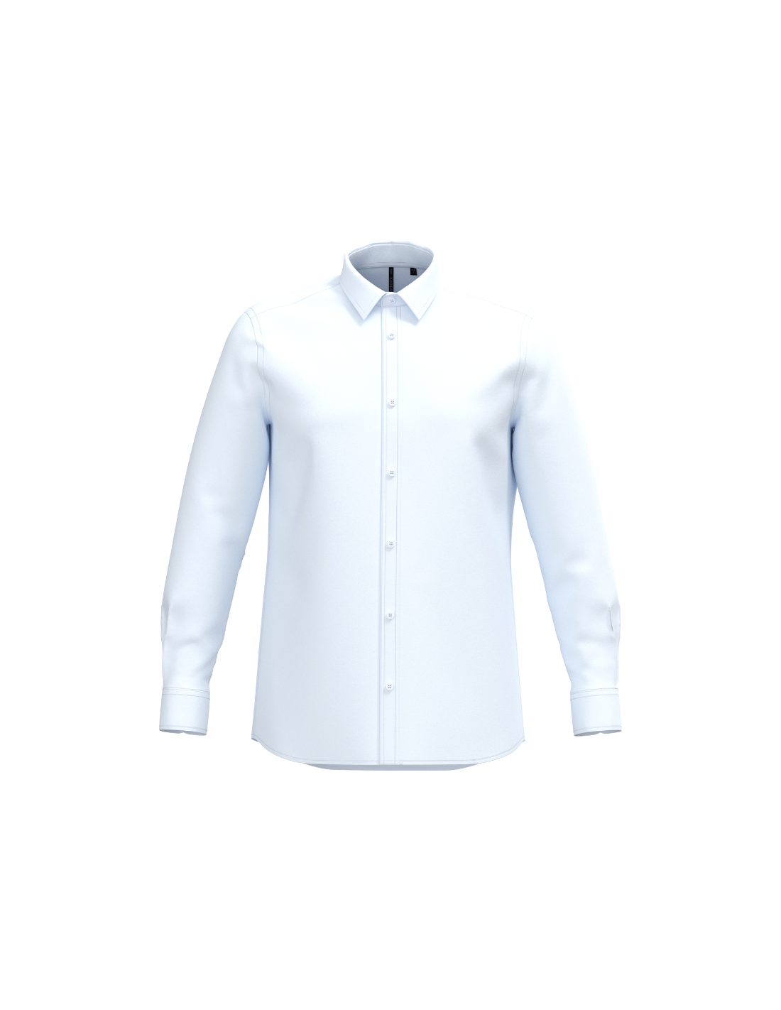 Tissu popeline. Entretien facile (traitement Easy care). Pointe de col baleinée. Ourlets bas de vêtement simple aiguille. Empiècement haut de dos doublé. Coupe standard. Poignées à 2 boutons à angles arrondis avec patte de manche capucin boutonnée. Boutons ton sur ton. Bas arrondi.