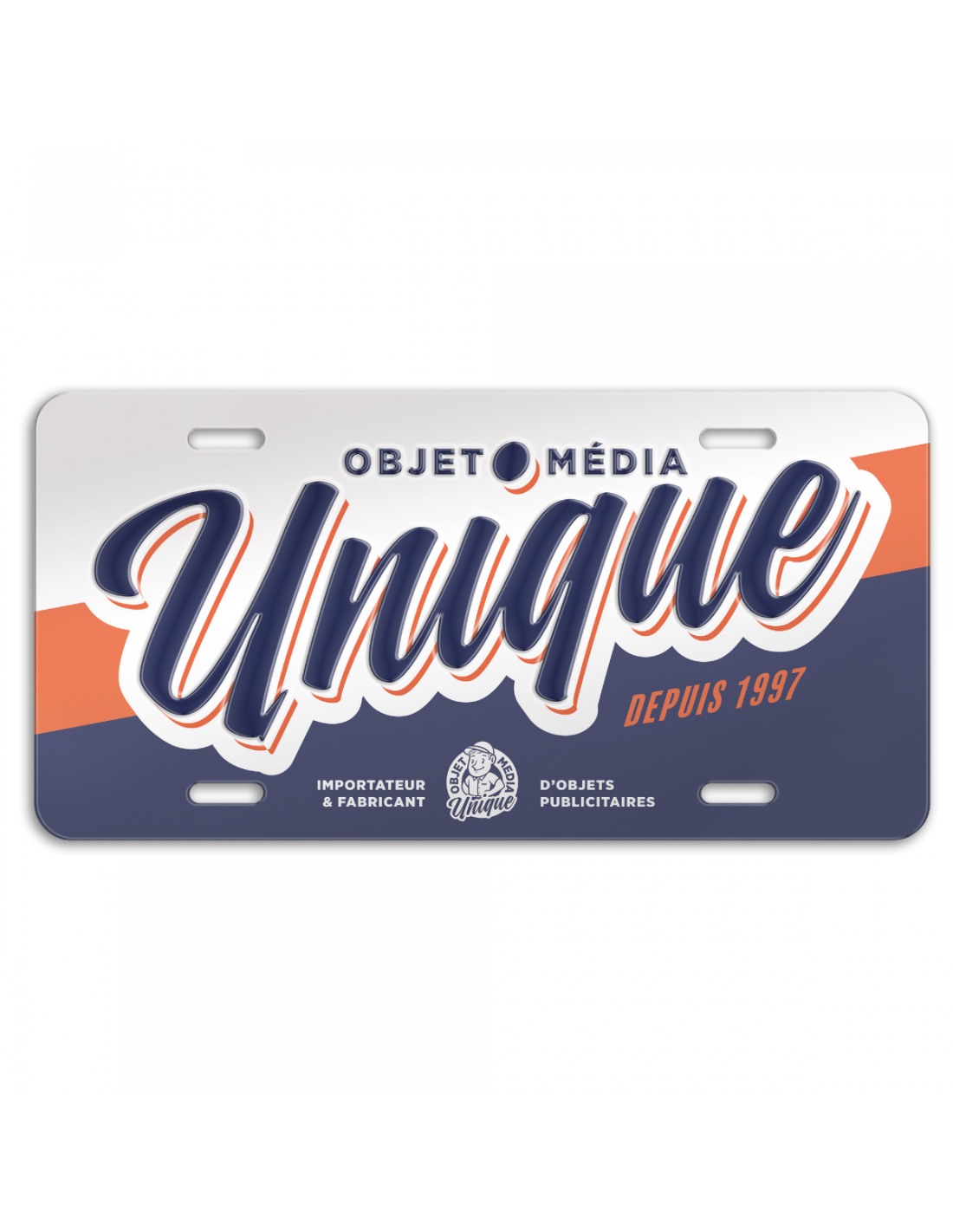 Plaque en aluminium rectangulaire. Possibilité de débossage et impression UV sur toute la surface pour un rendu précis, coloré et durable.