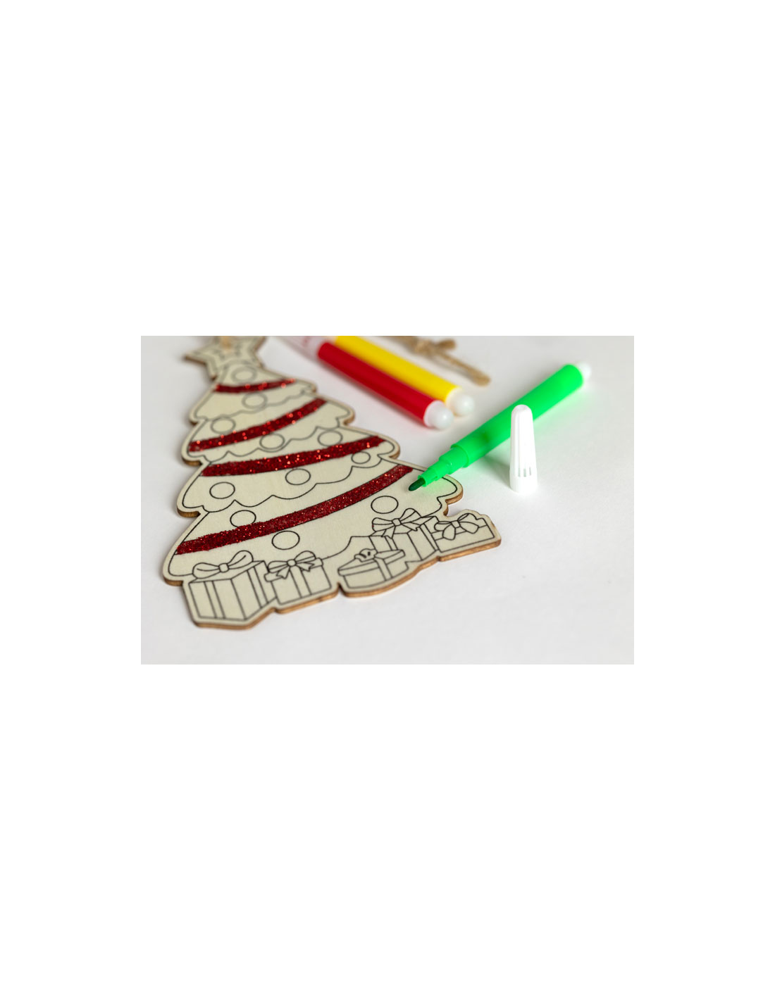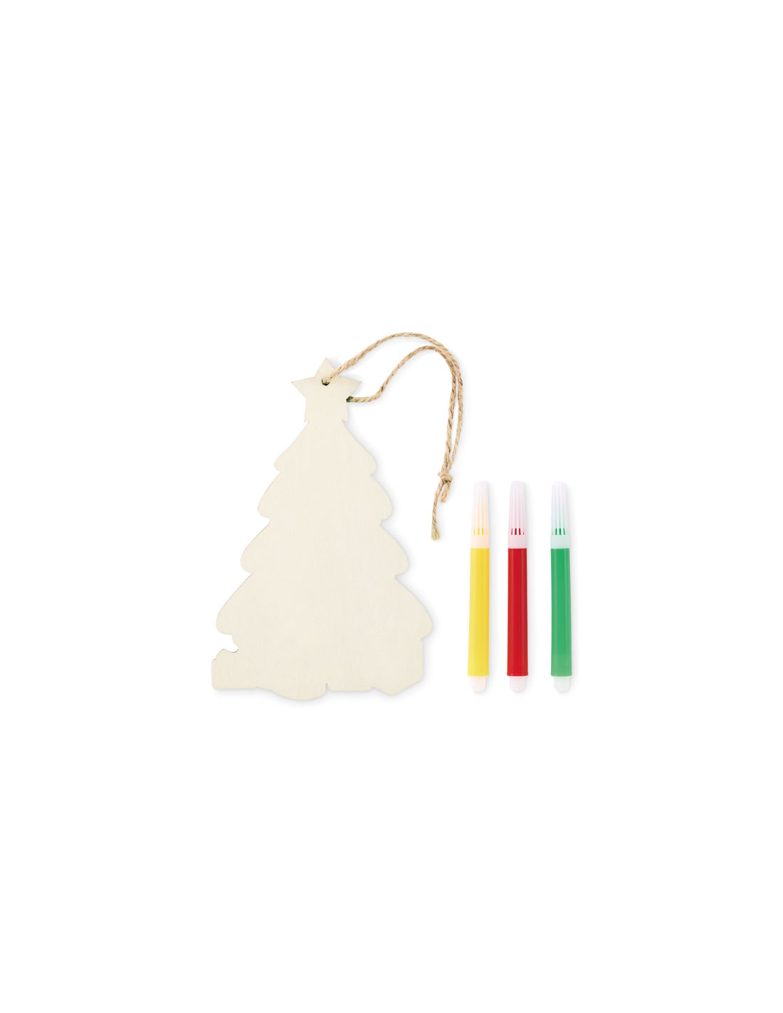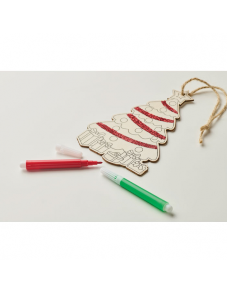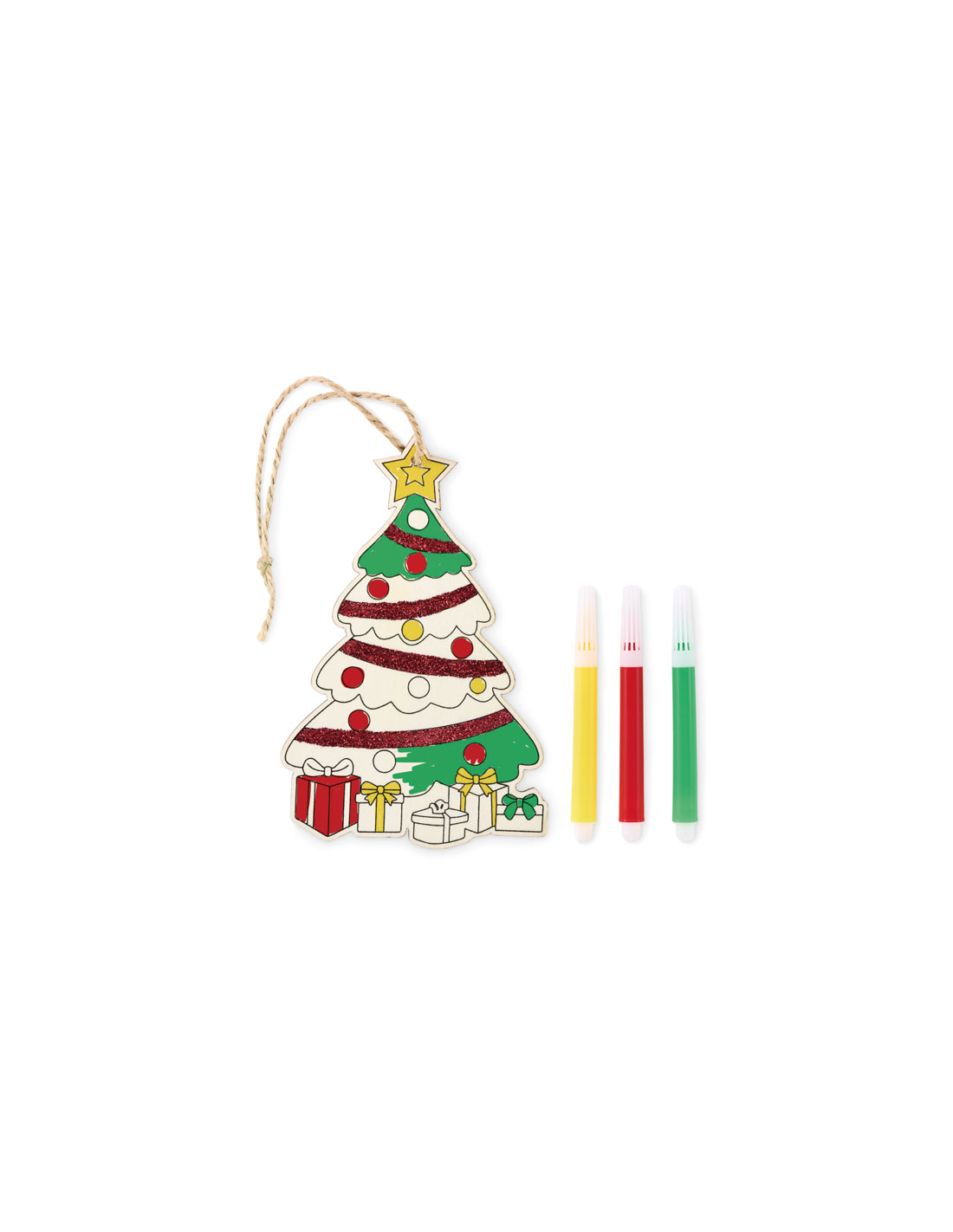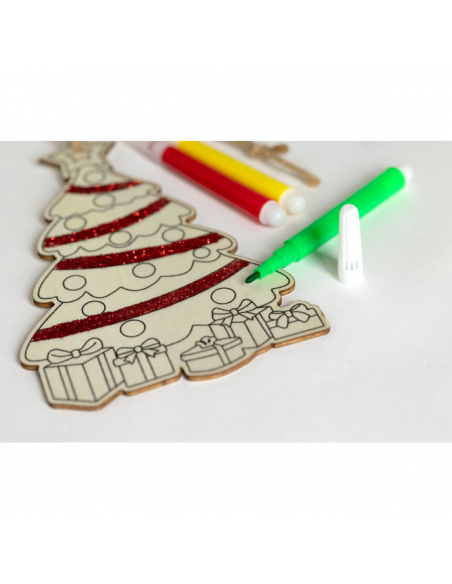 Décoration de Noël en bois de peuplier à colorier, avec 3 feutres et un cordon en jute.Dimensions : 9 x 3,7 x 0,2 cm