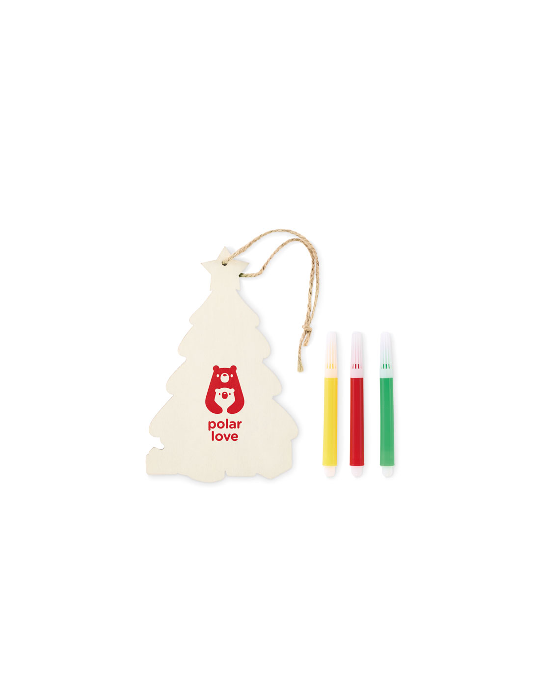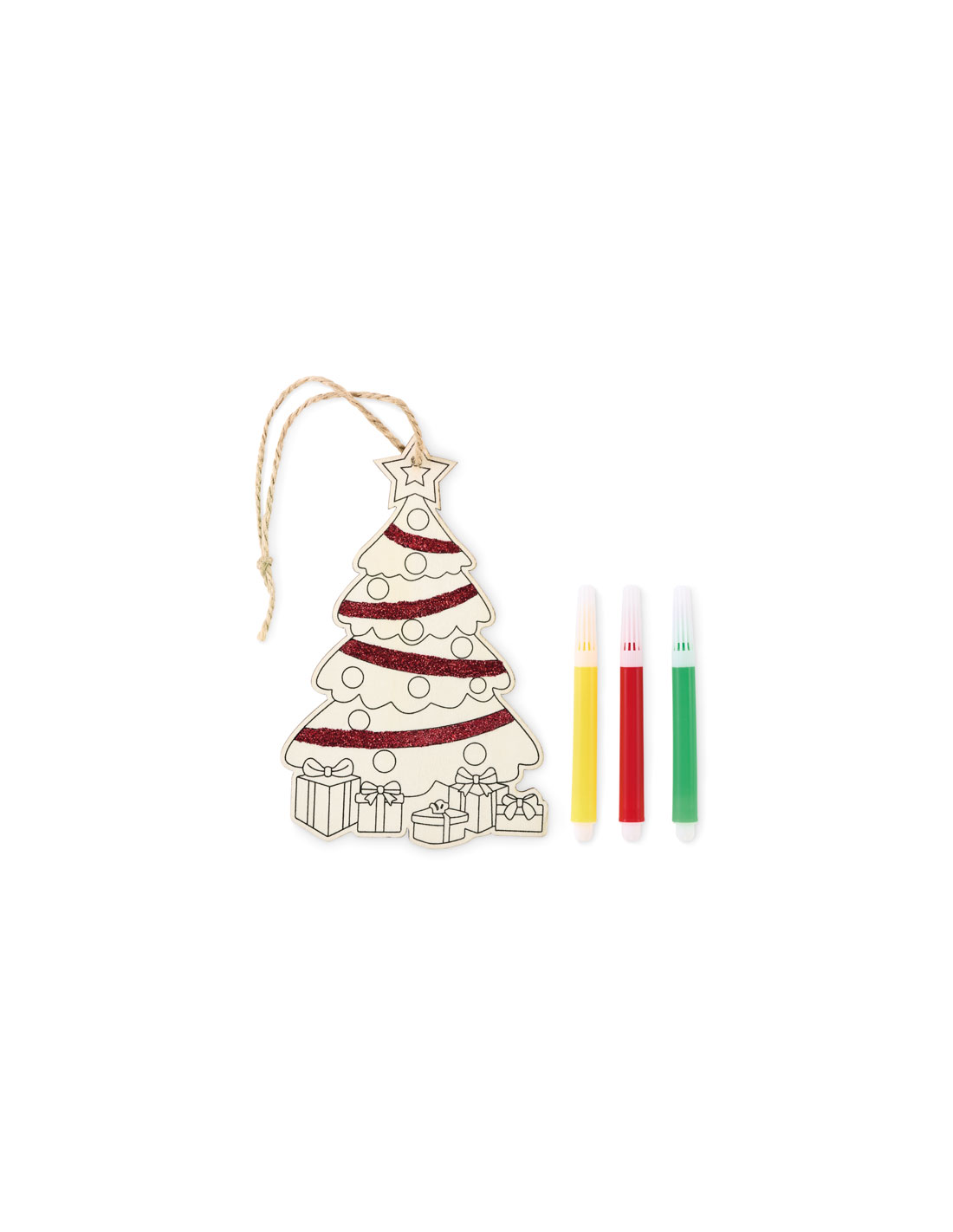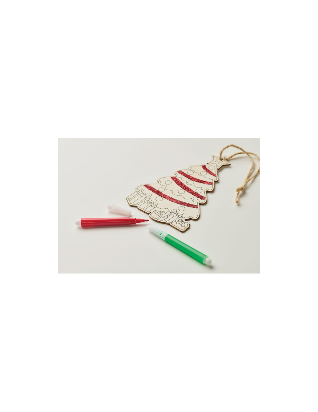 Décoration de Noël en bois de peuplier à colorier, avec 3 feutres et un cordon en jute.Dimensions : 9 x 3,7 x 0,2 cm