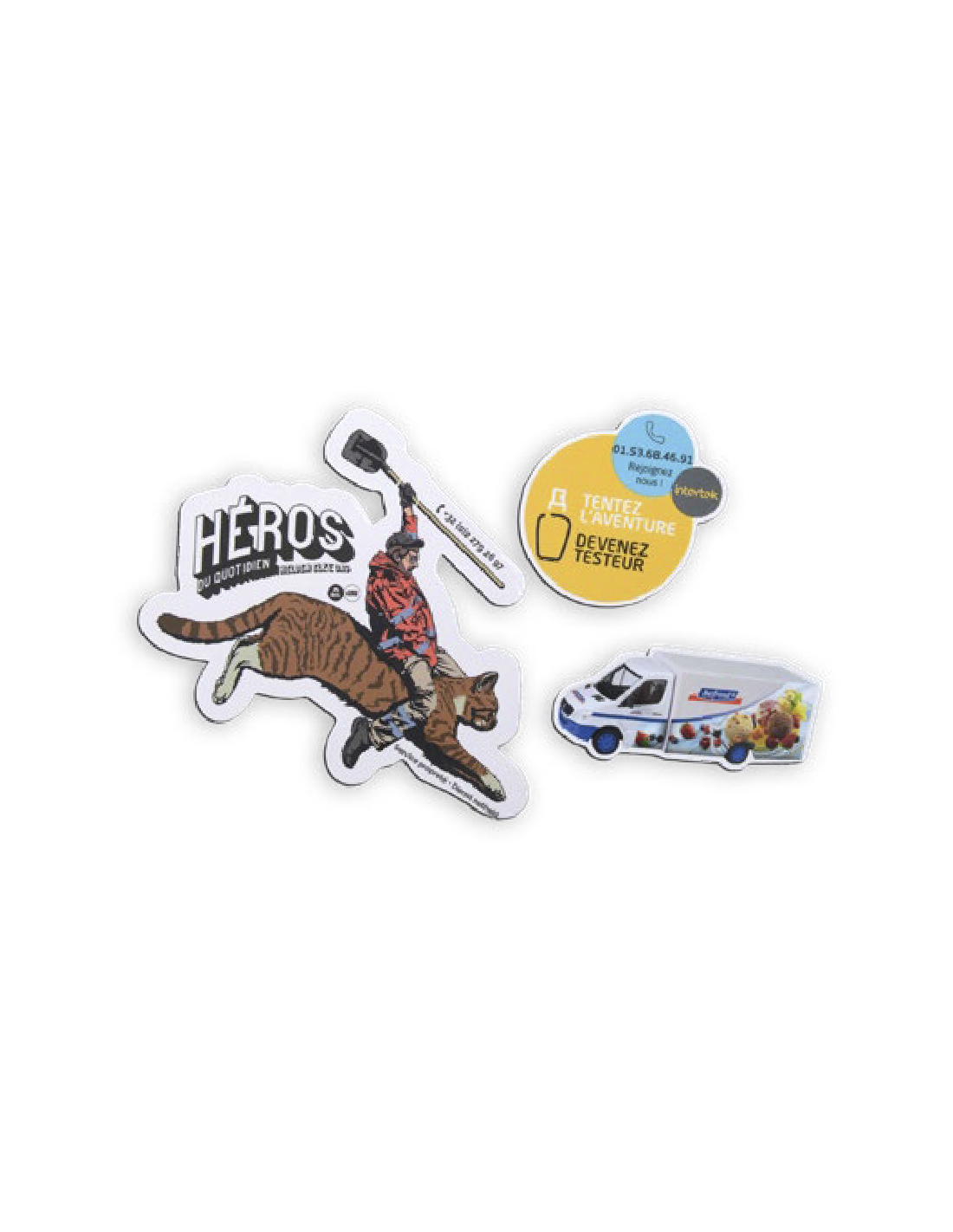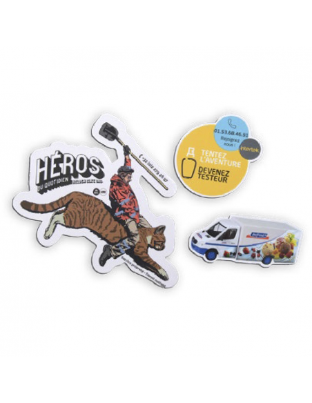 Magnet plat souple en PVC.Dimensions : sur-mesureÉpaisseur : 0,5 mmQuantité minimum : 500Matière : PVC