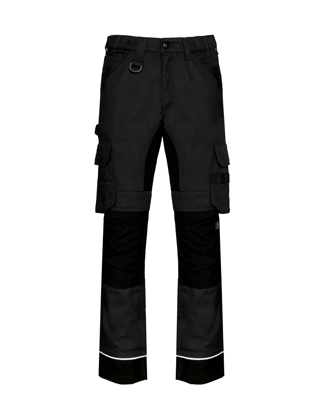 Lavage 60°C. Coupe droite. 2 poches devant (sacs de poches en tissu principal) dont 1 avec poche ticket. 2 poches cargo volantes à soufflet et rabat et fermeture velcro dont une à 2 compartiments et emplacements outils, Poche stylos côté droit au porté. 2 poches arrière à soufflet avec rabat et fermeture velcro, Porte-marteau à gauche au porté. Mousse de confort genou intégrée dans une poche en Cordura® contrasté (noir pour toutes les couleurs). Empiècement extensible contrasté (sauf coloris noir) à l'entrejambe, à l'arrière des genoux pour plus de résistance et une parfaite liberté de mouvement. Empiècement bas de jambe en Cordura® avec piping silver et ourlet ajustable de 5 cm. Triple piqûres fourche dos et devant. Double piqûres côtés et entrejambe. Ceinture avec boucle plastique + passants ajustable grâce à un élastique. Large passant à l'arrière de la ceinture. Fermeture zippée et boutonnée (bouton métal recouvert de plastique). Étiquette de marque détachable. Vendu sans accessoire.