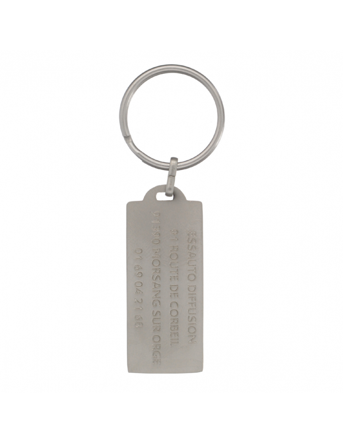 Porte-clés totem 3D fond plat, finition nickel brillant.Dimensions : 45 x 20 x 3,5 mmQuantité minimum : 300Matière : zamac