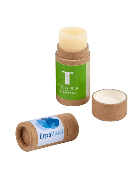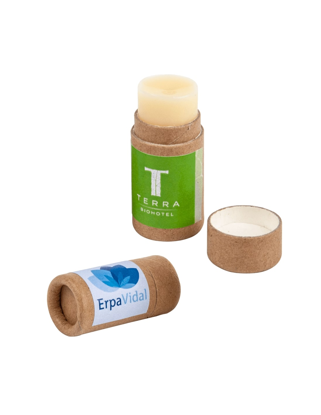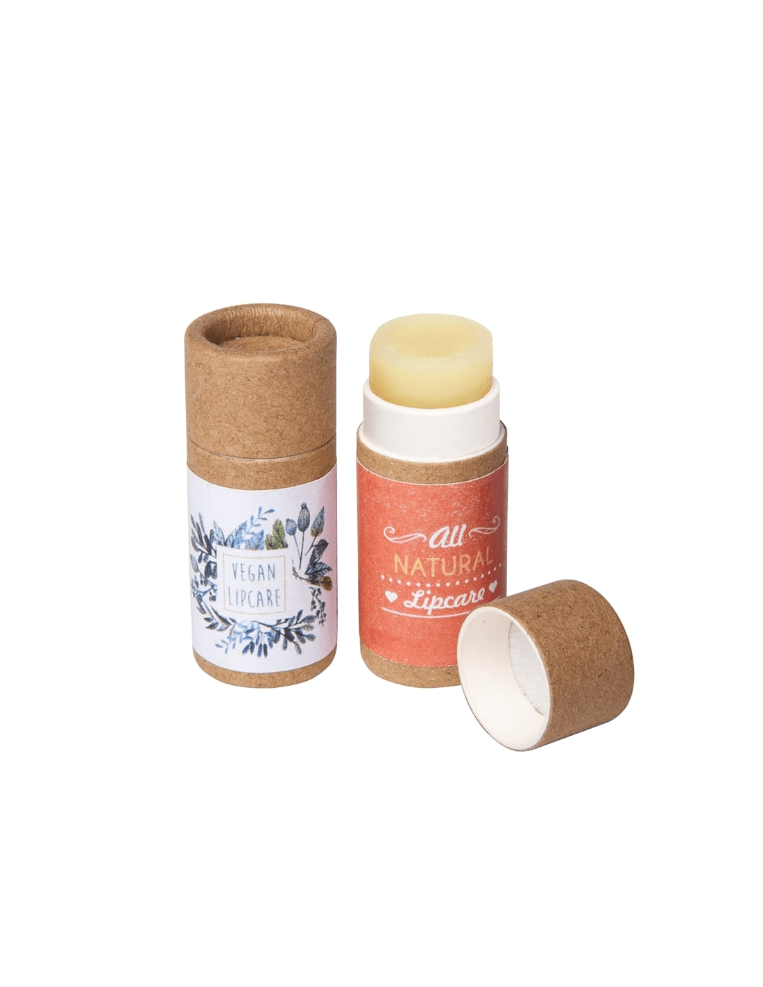 Baume à lèvres conditionné dans un petit tube écologique en carton.