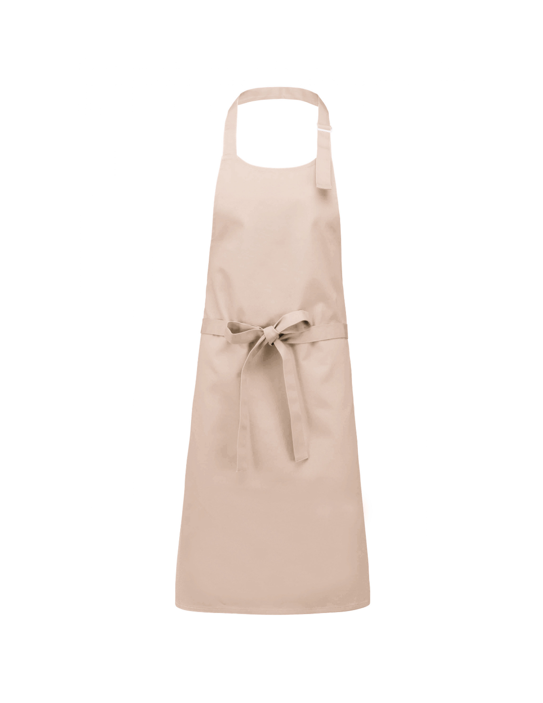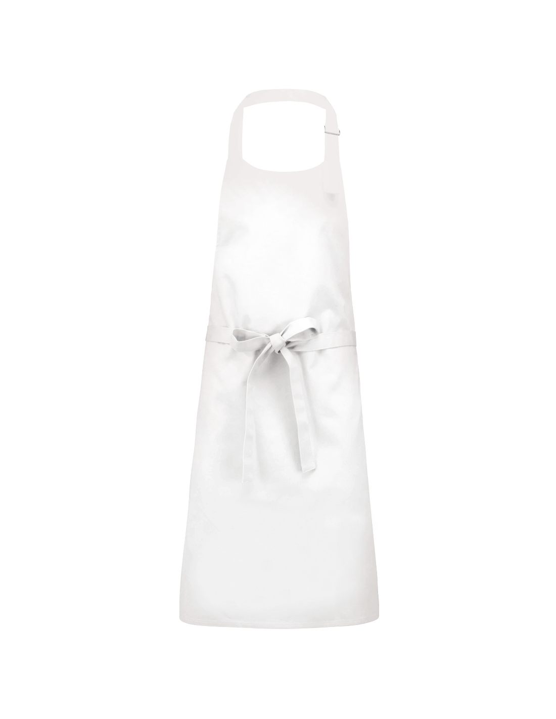 Lavable à 60°, idéal pour un usage professionnel. Boucle de réglage en métal au niveau du cou pour ajuster la longueur du tablier. Sans poche.