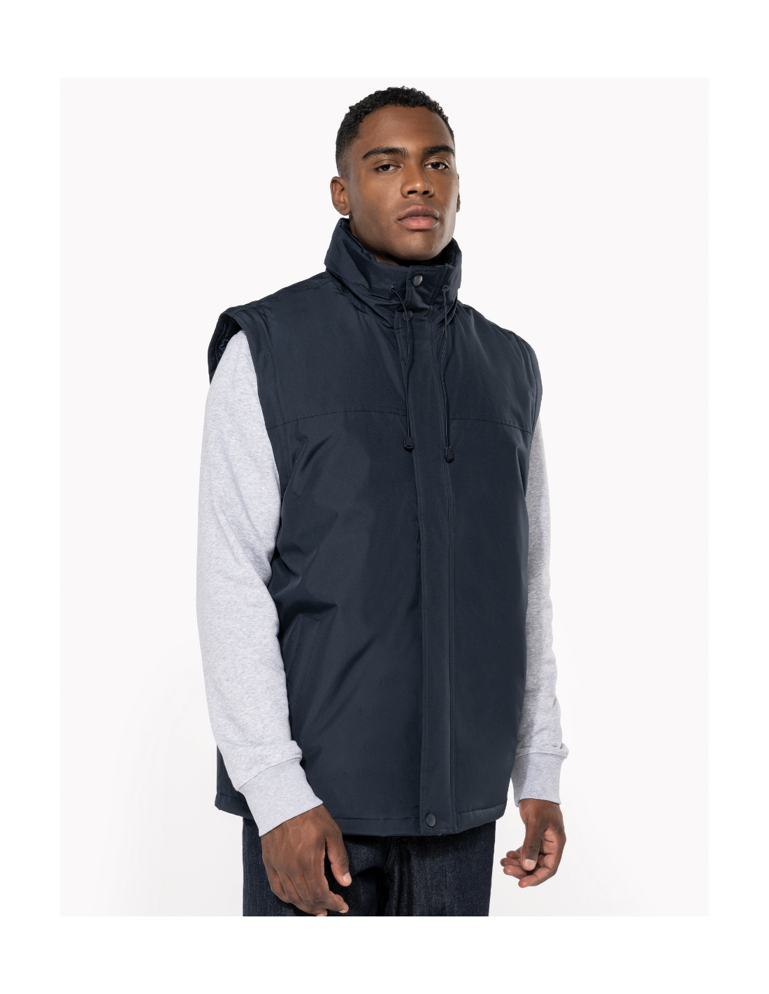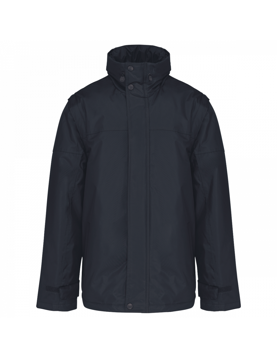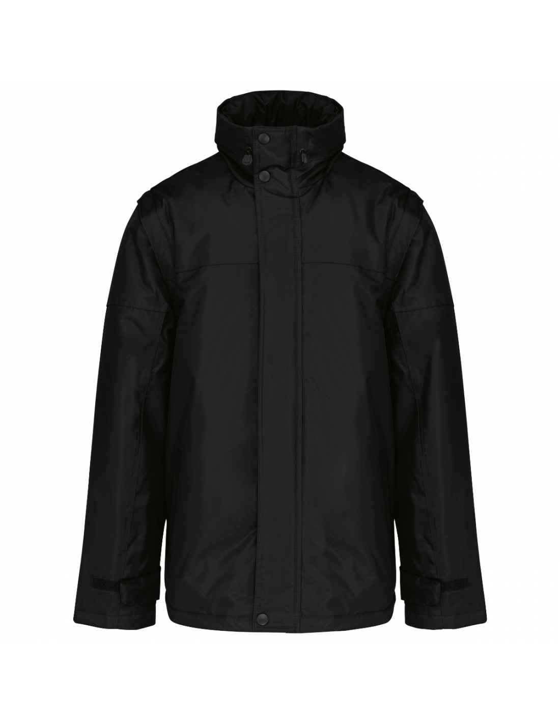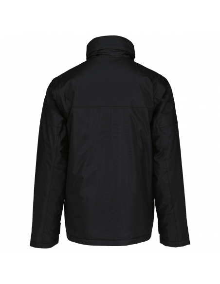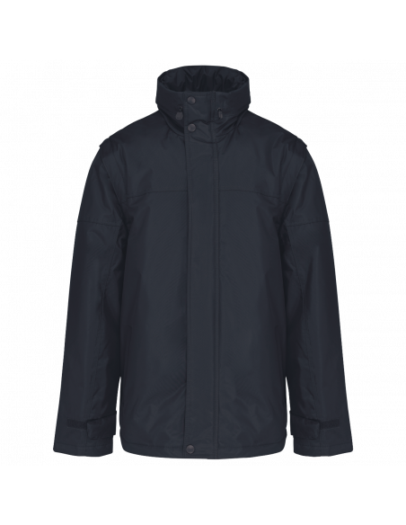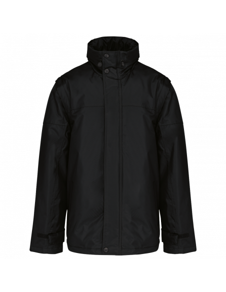 Fermeture zippée et patte de boutonnage à pressions. Patte de serrage bas de manche auto-agrippante. Capuche dans col, fermeture zippée avec cordon élastique. 2 poches intérieures + 1 poche pour téléphone portable. Zip intérieur pour personnalisation. Doublure corps : 100% polyester et ouate 100% polyester. Manches amovibles. 2 poches latérales passepoilées. Cordon de serrage au bas avec stoppeurs. Capuche dans le col. Ouverture par zip pour personnalisation.