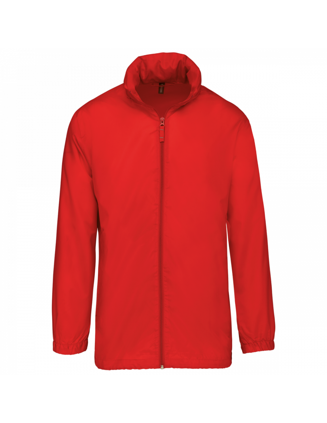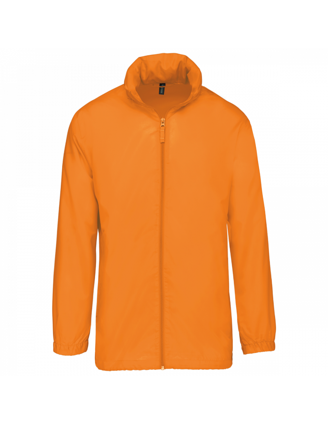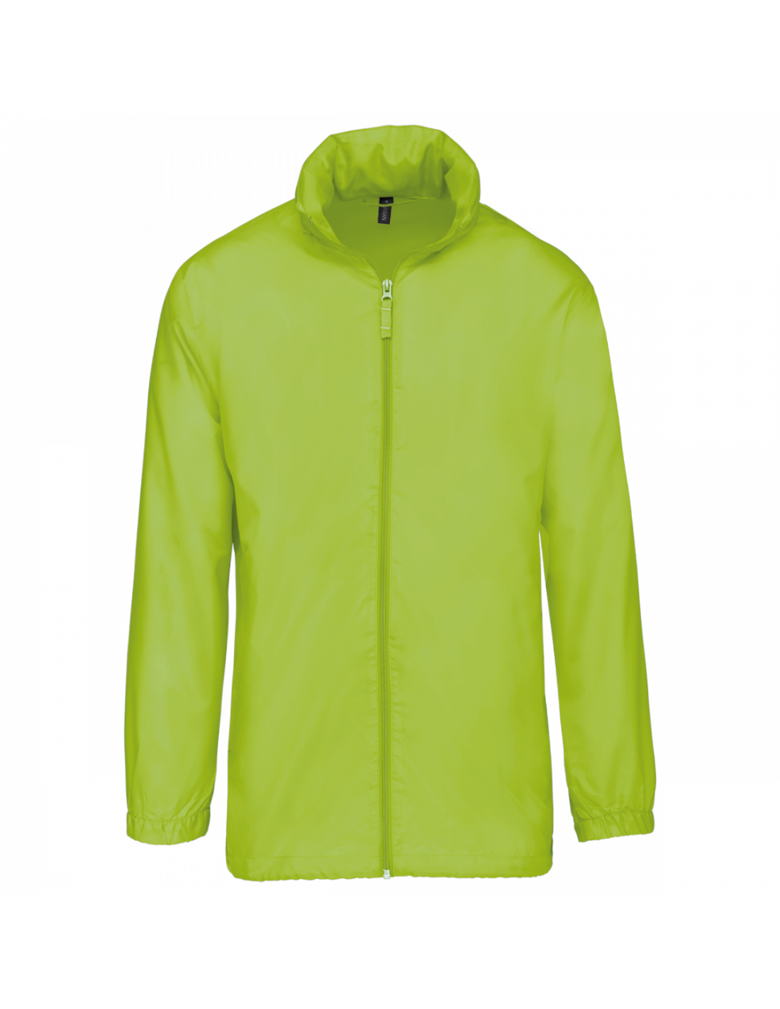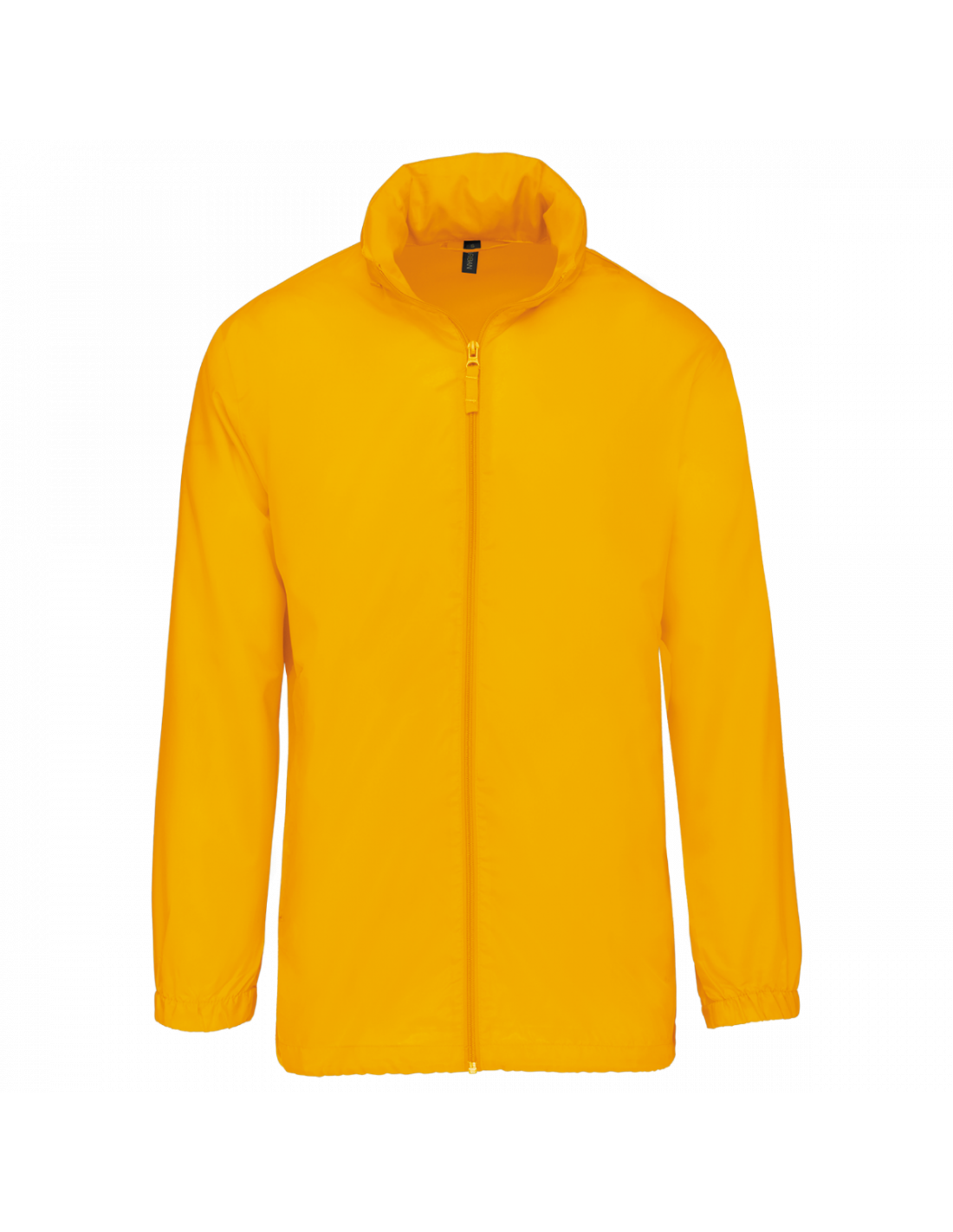 Capuche dans le col avec patte auto-agrippante. 2 poches zippées devant. Cordon de serrage au bas. Bas de manches élastiqués. Repliable dans sa poche sur la base du système K-WAY®. Fermeture zippée ton sur ton.