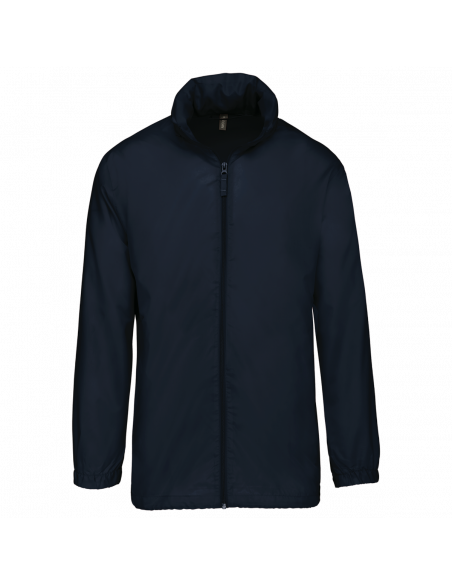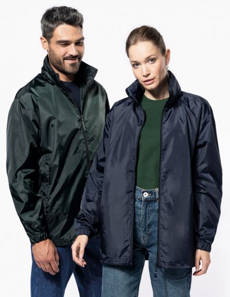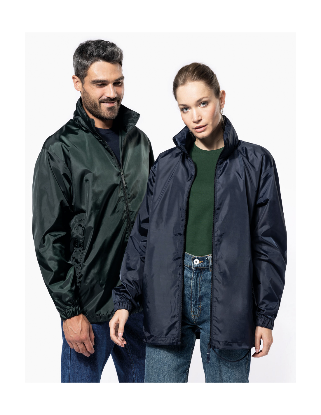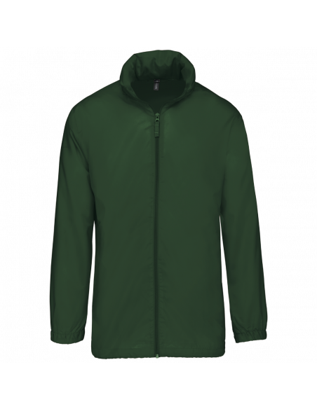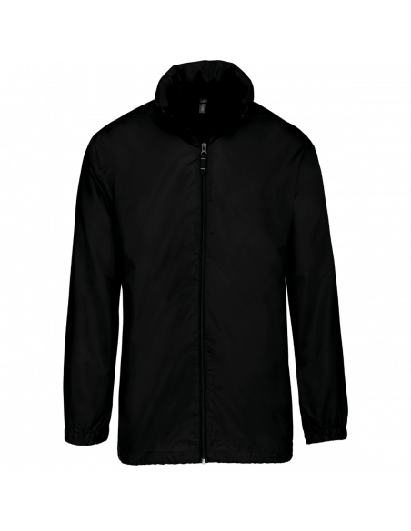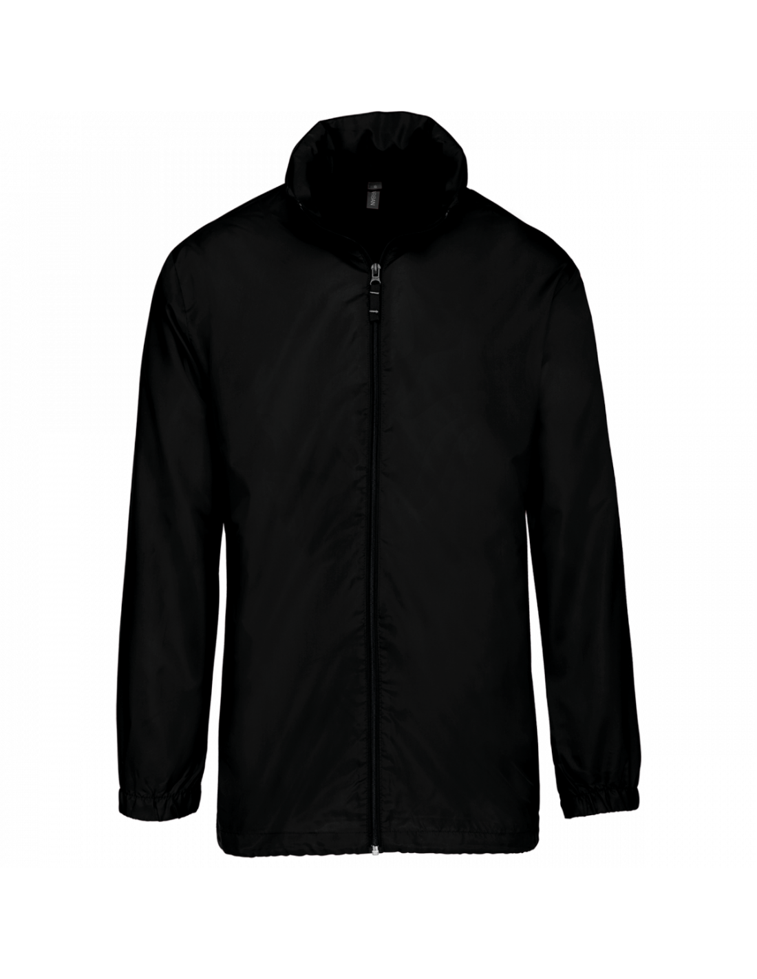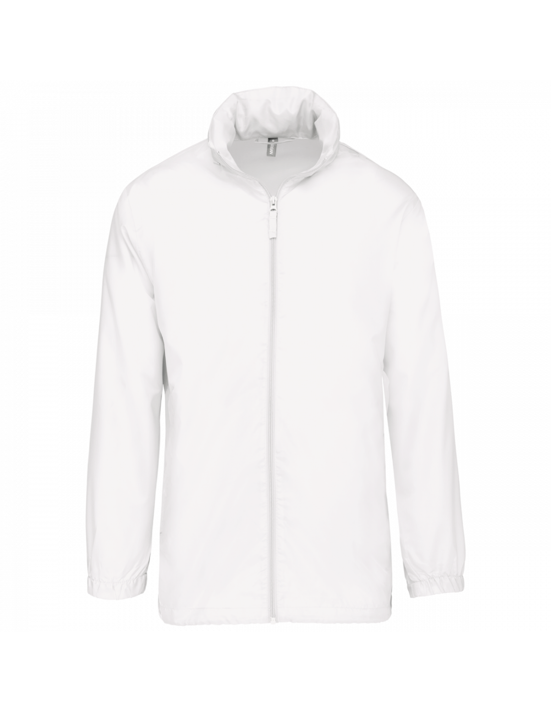 Capuche dans le col avec patte auto-agrippante. 2 poches zippées devant. Cordon de serrage au bas. Bas de manches élastiqués. Repliable dans sa poche sur la base du système K-WAY®. Fermeture zippée ton sur ton.