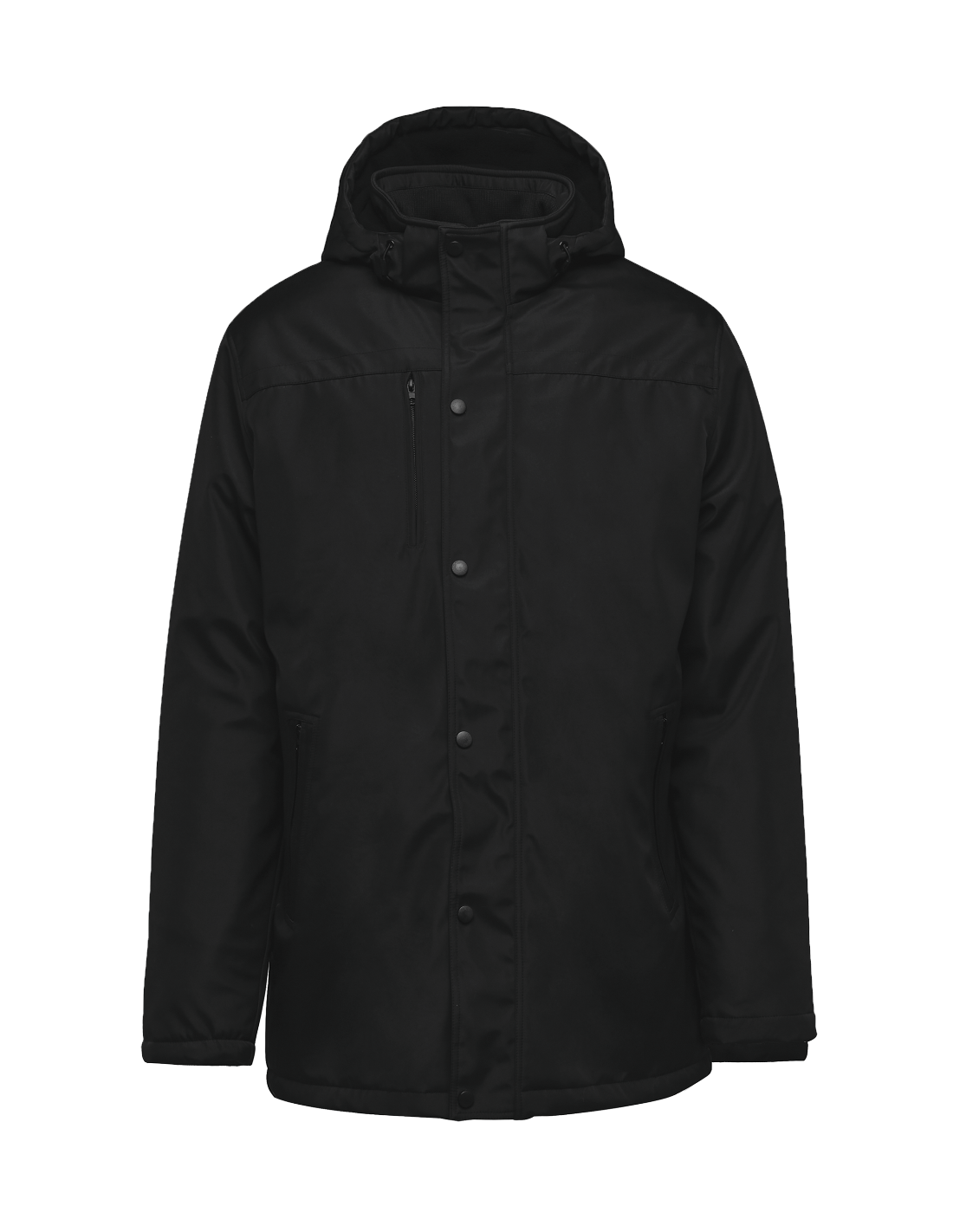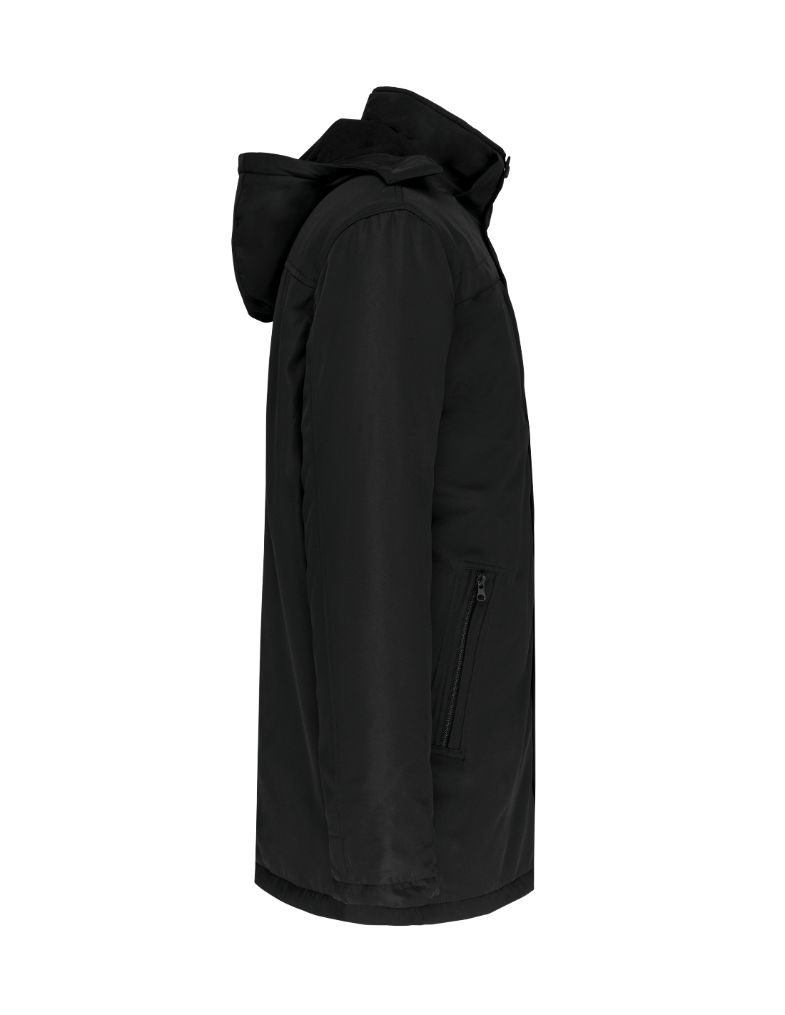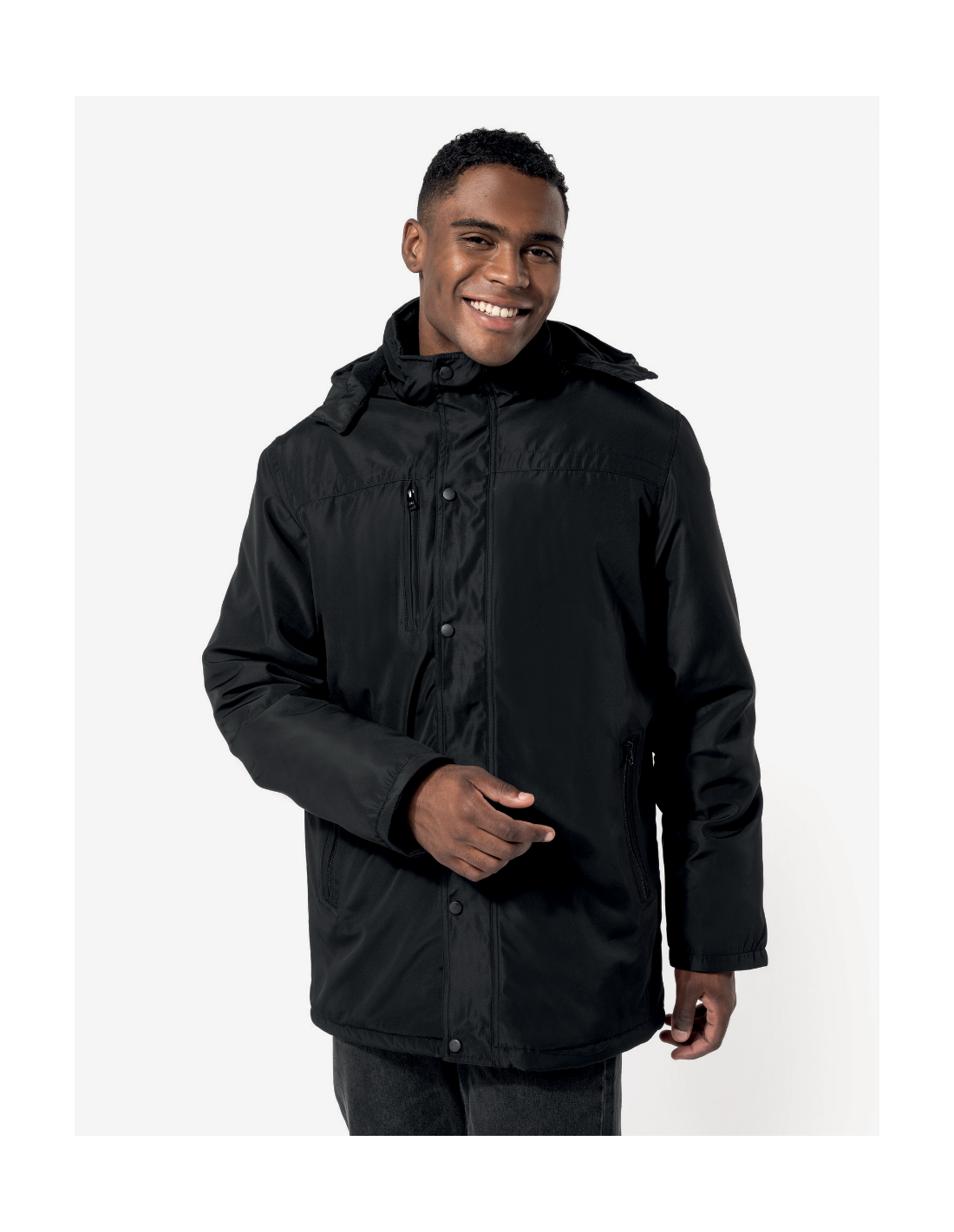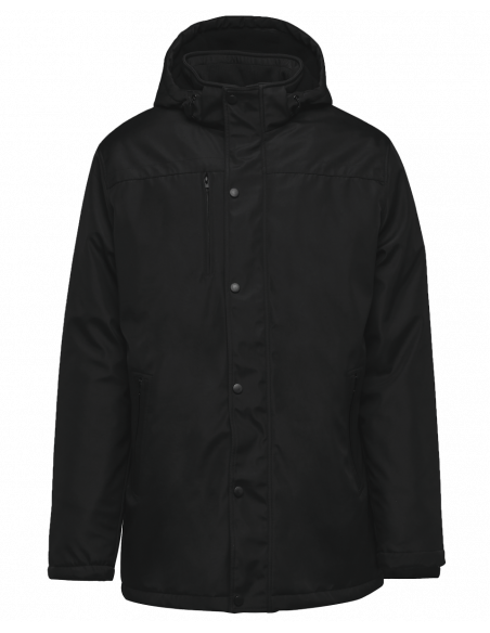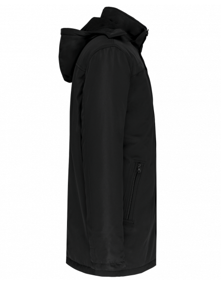 2 poches côté et 1 poche poitrine zippées à l'avant. 2 poches intérieures. Intérieur col en bord-côte et capuche amovible doublée polaire. Fermeture zippée avec double curseur et rabat. Bas de manche avec poignets intérieurs en bord-côte. Bande intérieure fantaisie bicolore. 1 zip côté cœur et 1 zip au bas du vêtement pour accès personnalisation.