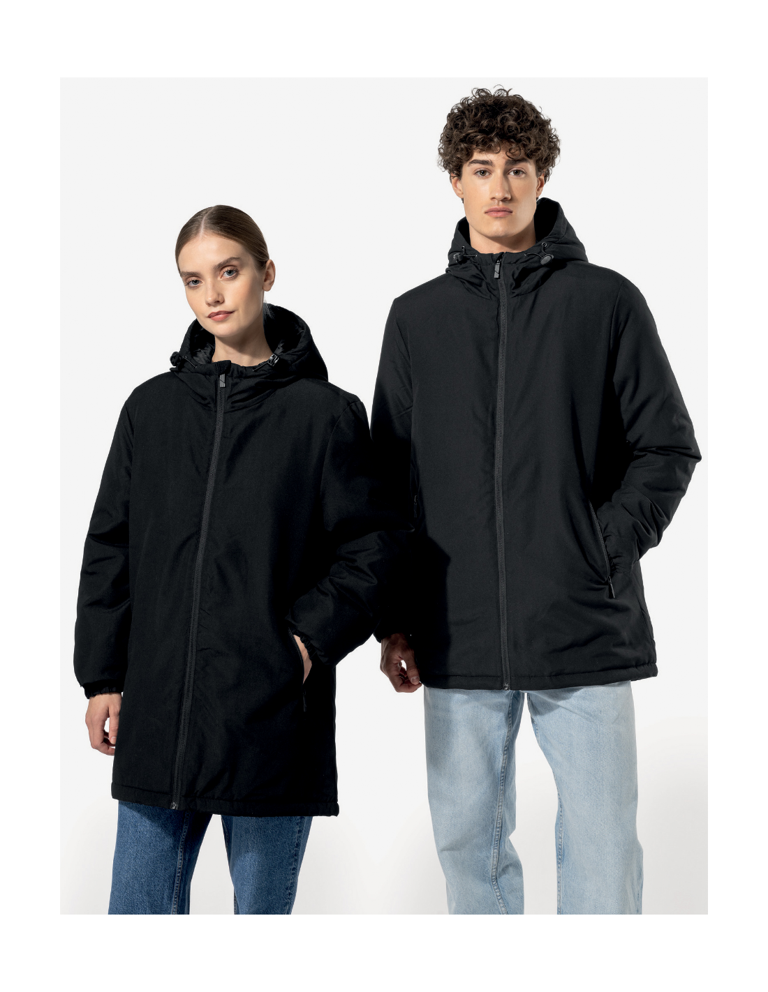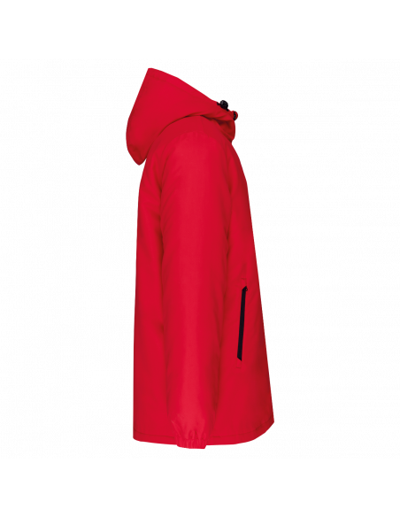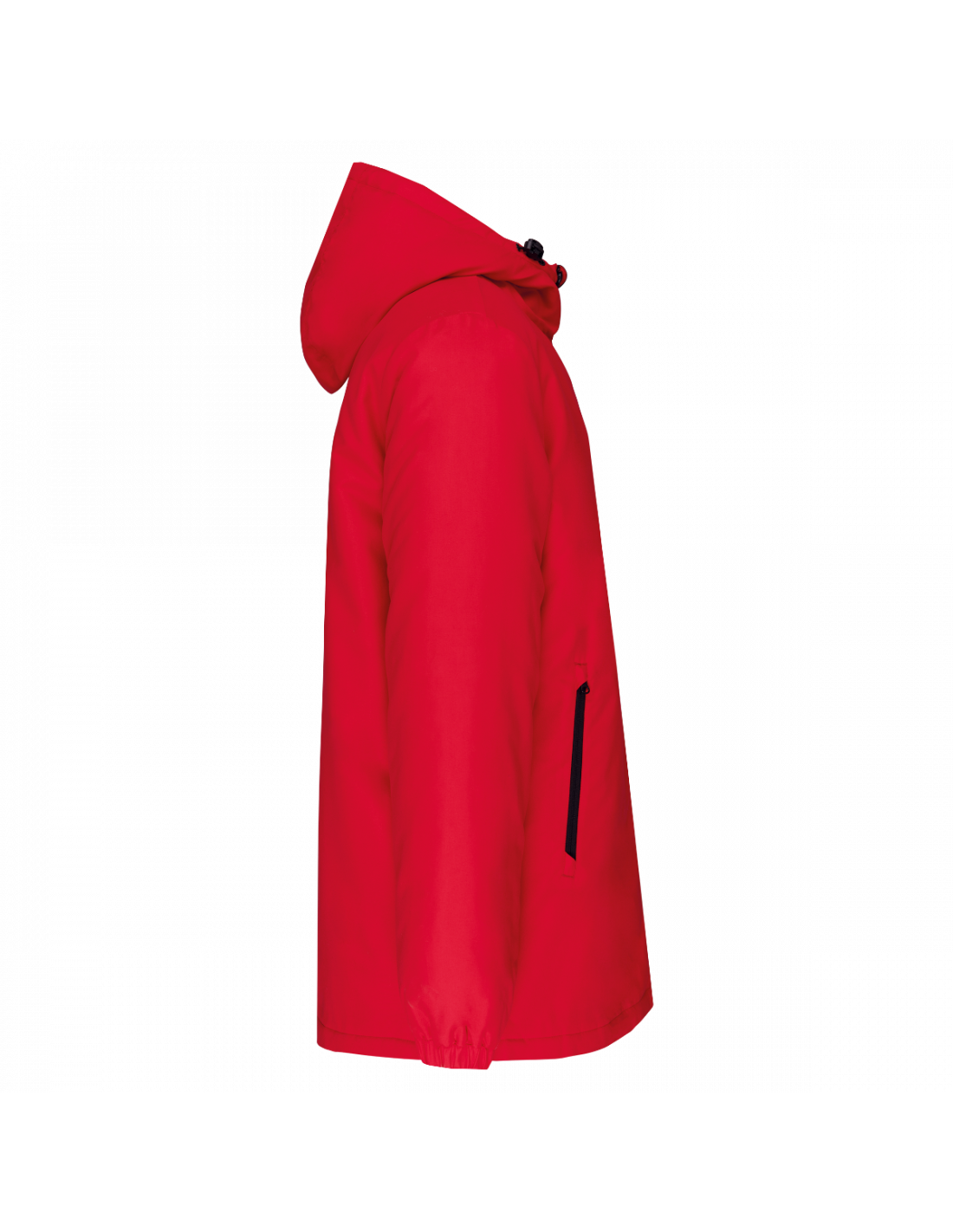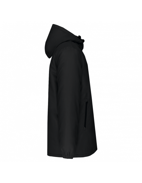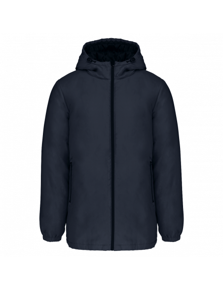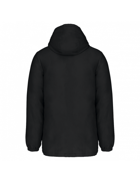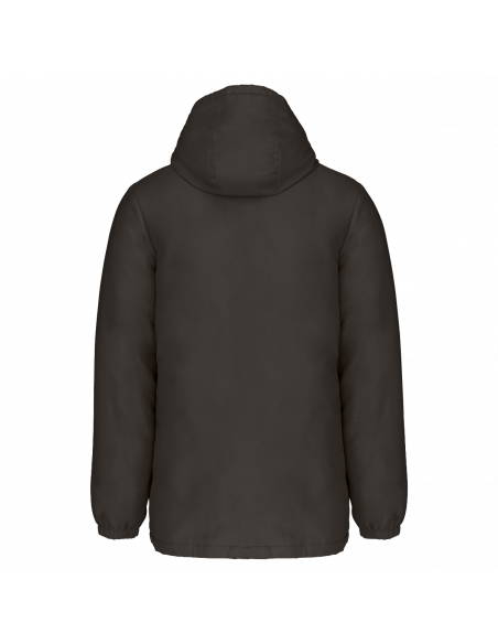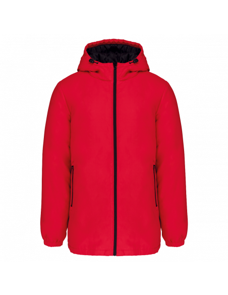 Tissu déperlant. Finition peau de pêche pour un toucher plus doux. Doublure polyester taffeta 210T noire. Intérieur matelassé 100% polyester. Coupe confort. Fermeture zippée nylon et tire-zip métal. Capuche 3 panneaux doublée polyester avec cordon de serrage et stoppeurs. 2 poches devant zippées. 1 poche intérieure avec fermeture par bande auto-agrippante. Bas de manches élastiqué. Dos rallongé pour plus de confort. Patch tissu intérieur col pour la personnalisation. Zip invisible côté cœur et bas de vêtement pour accès personnalisation. Pas d'étiquette de marque pour faciliter la personnalisation.