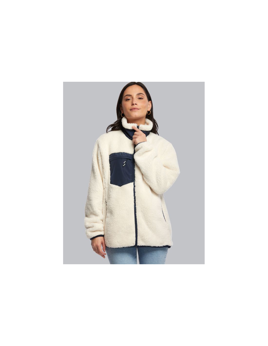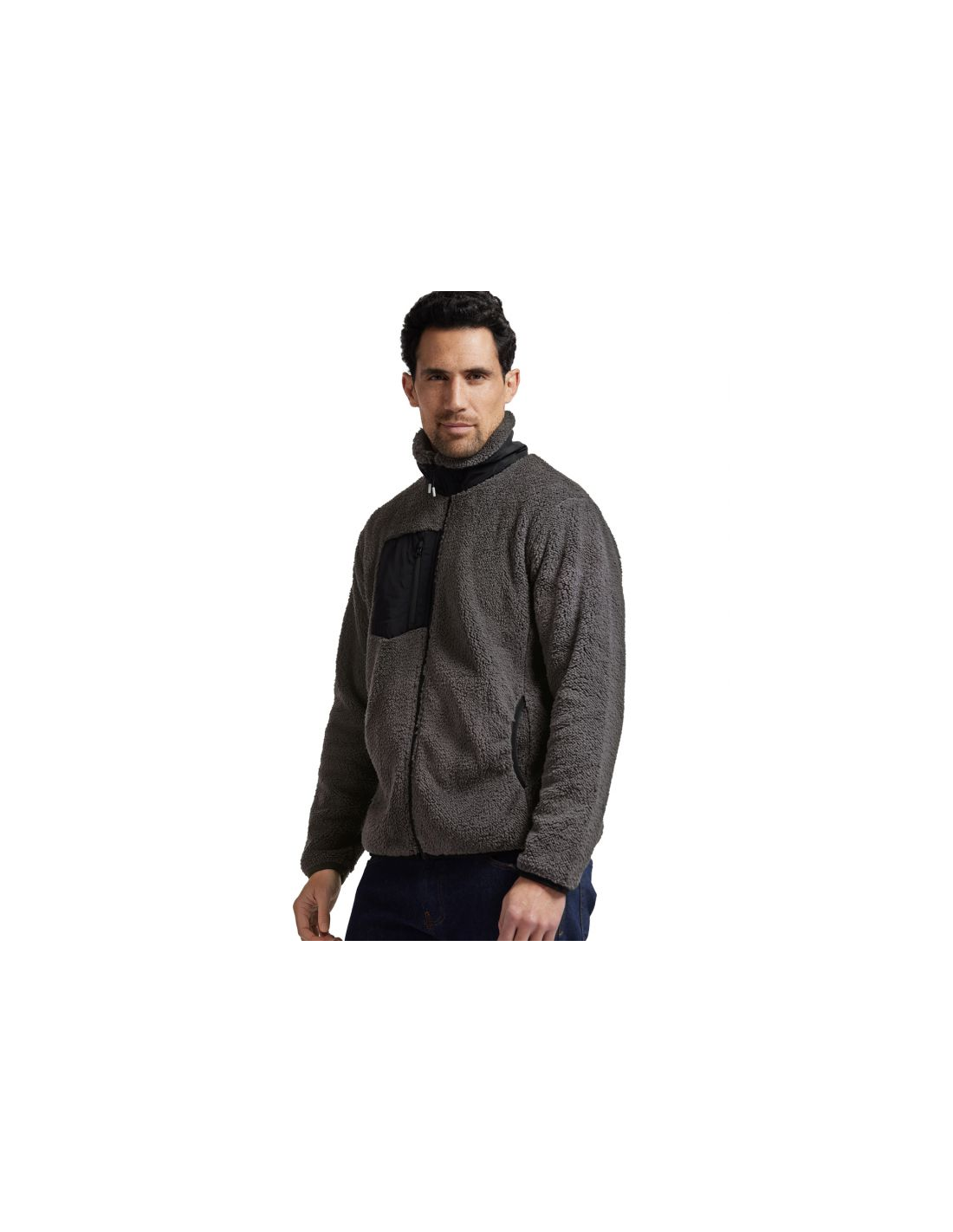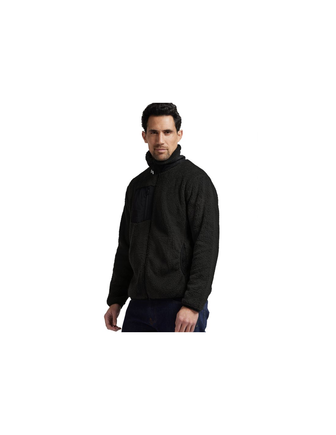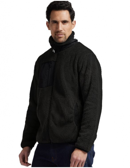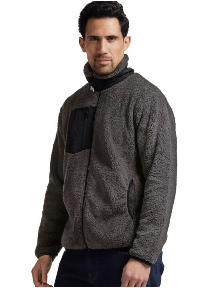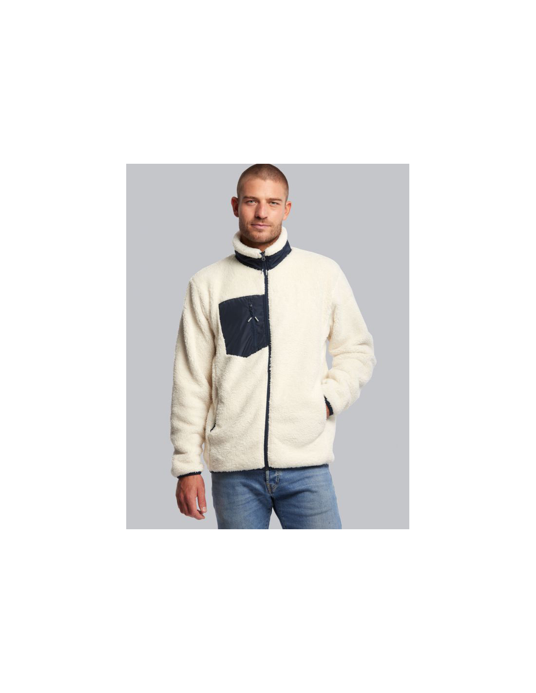 Blouson en polaire brossée dite Sherpa. Intérieur en micropolaire. 2 poches mains zippées. Poche zippée anticoeur sur empiècement en polyester ripstop. Coupe droite.