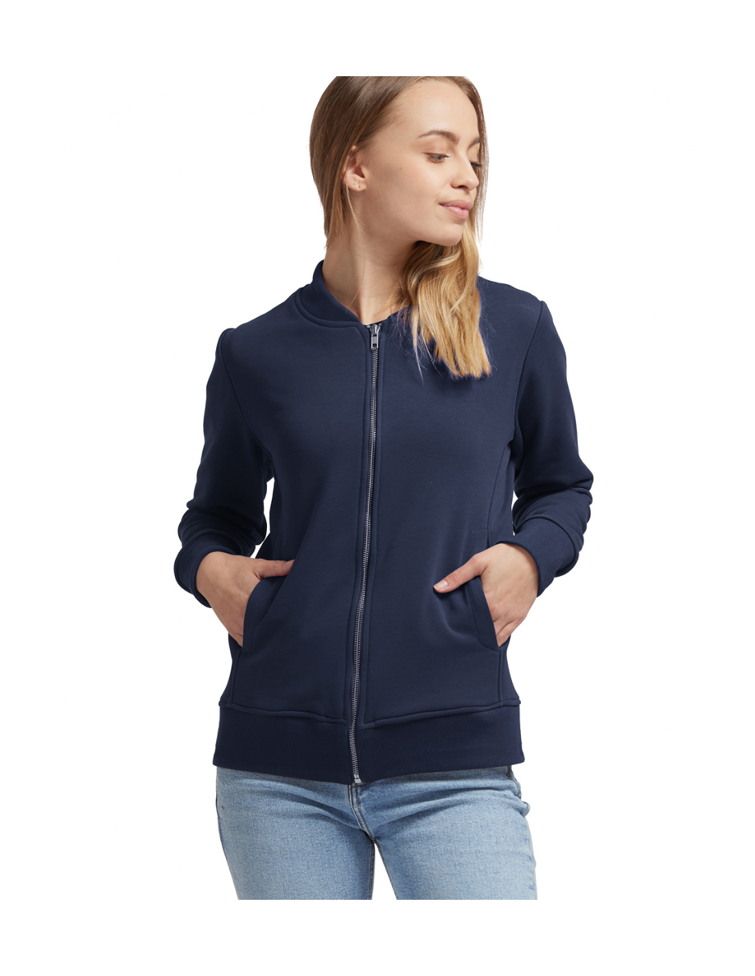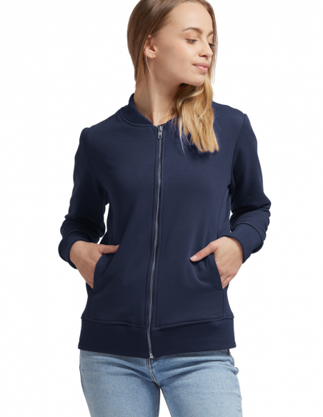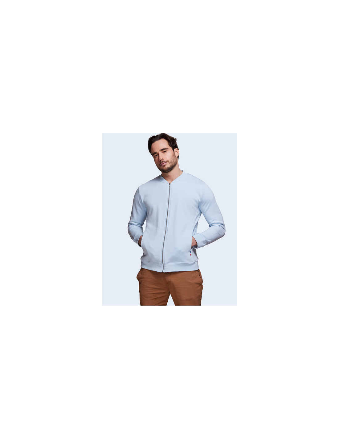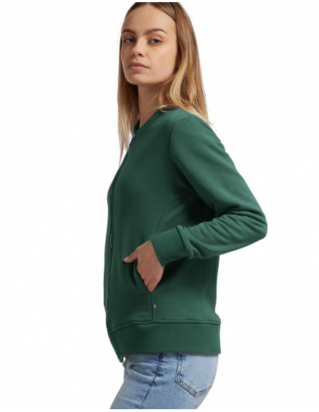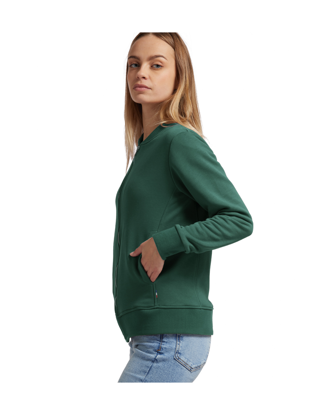 Blouson Made in France façon Teddy. 2 poches mains passepoilées. Matière Terry 350g/m² lavée, non grattée pour éviter le boulochage + traitement silicone pour améliorer la longévité du vêtement. Col en demi lune. Double piqure en bas de veste. Bande de propreté au col. Zip central YKK.