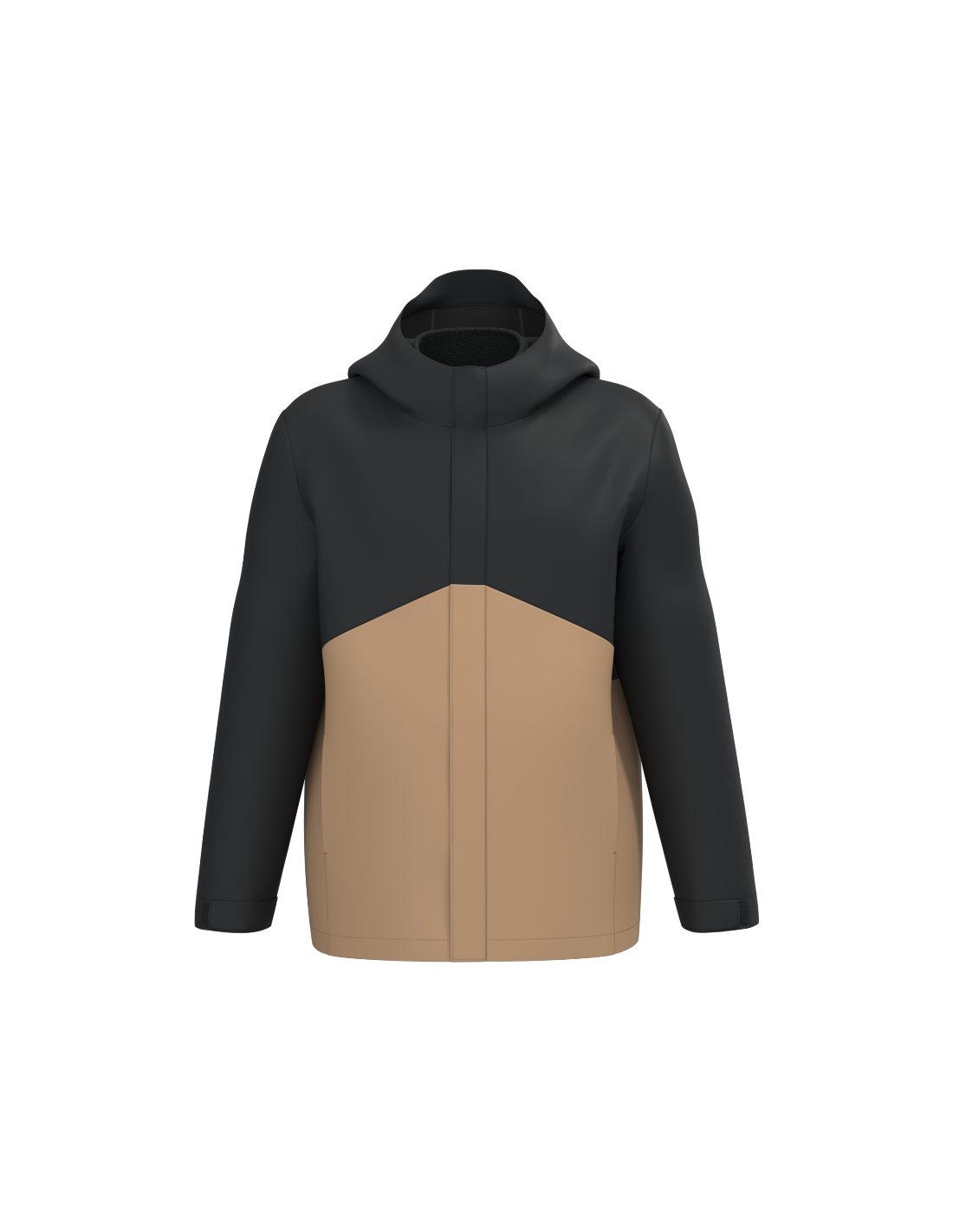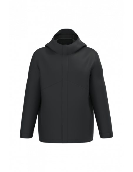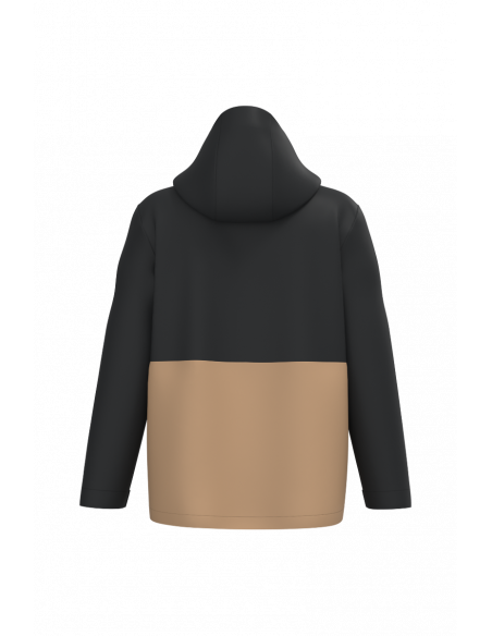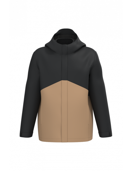 Tissu léger et respirant 3000 g/m² /24h et imperméable 4000 mm. Tissu avec membrane intérieure et coutures thermo soudées permettant au produit d'être imperméable. Coupe droite. Empiècement sur le devant et le dos ton sur ton pour la version Black et bicolore pour les versions Camel/Black et Navy/Dark Grey. Fermeture zippée invisible avec pattes auto-agrippante, zip inversé, double tire-zip métal. Doublure polaire amovible avec fermeture zippée. Deux poches latérales passepoilées extérieures zippées. Intérieur : une poche pour téléphone portable côté cœur et deux poches latérales zippées sur la doublure polaire. Capuche 3 panneaux avec visière, cordon de serrage et stoppeurs. Bas de manche réglable avec bande auto-agrippante. Bas de vêtement ajustable avec cordon de serrage et stoppeurs invisibles.