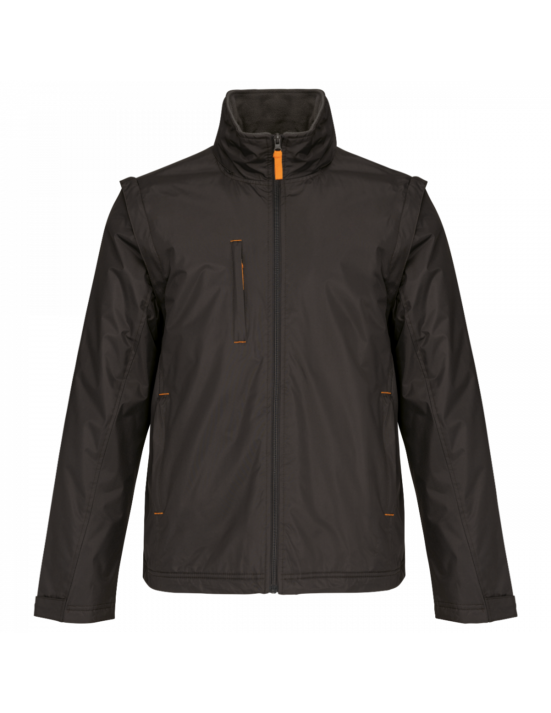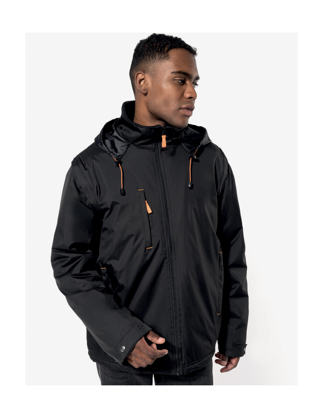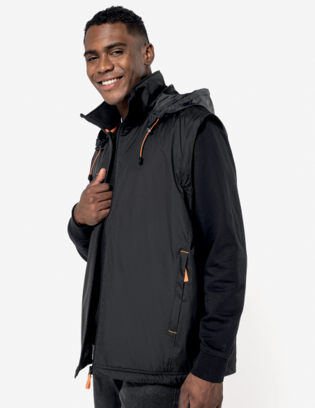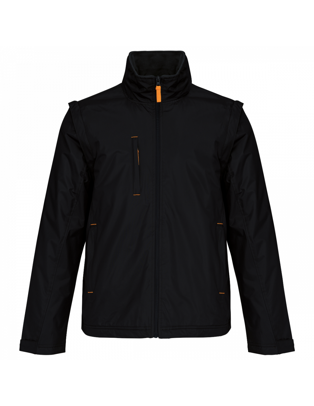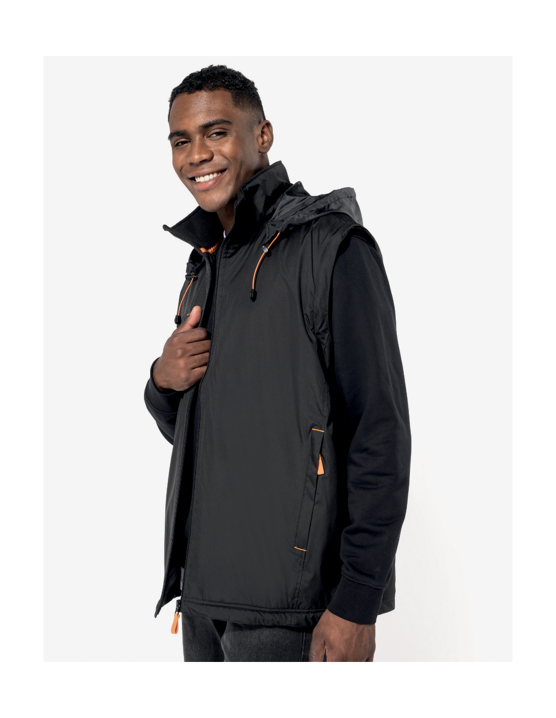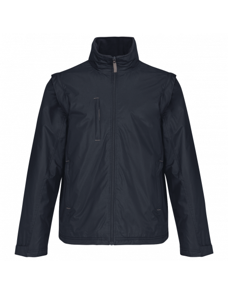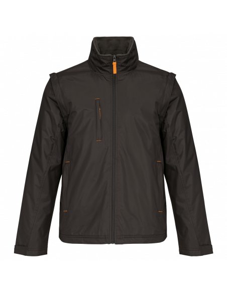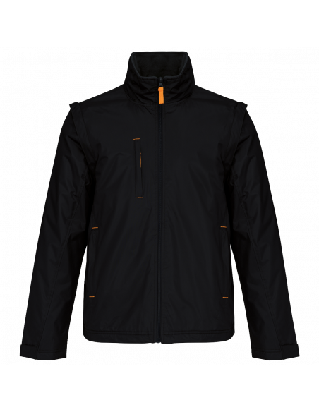 Doublure corps en polaire 100% polyester. Tissu souple. Fermeture zippée. 3 poches zippées. Manches amovibles zippées. Patte de serrage au bas des manches. Tirette du zip, tresse encolure et points d'arrêt contrastés. 3 poches intérieures (2 zippées et 1 poche pour le téléphone). Cordon de serrage intérieur contrasté au bas du vêtement. Capuche dans le col. Ouverture zip pour personnalisation.