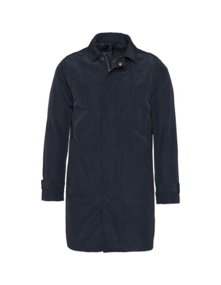 Tissu taffetas 320T déperlant. Col chemise. Fermeture zippée en métal cachée par patte et boutons pression. 2 poches côtés fantaisies pressionnées. Doublure sur devant entier et demi dos uniquement. 2 poches intérieures boutonnées et 1 poche pour téléphone portable. Pied de col extérieur et poches intérieures en tissu fantaisie enduit. Patte pressionnée au bas de manches. Zip invisible pour accès personnalisation.