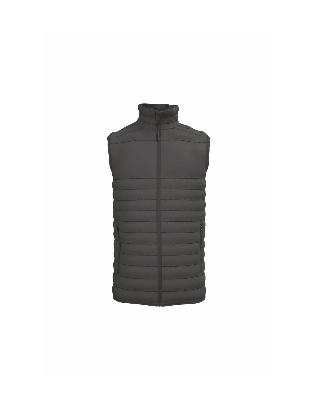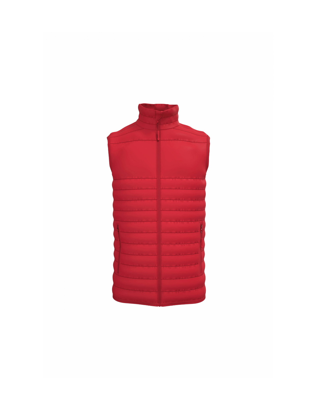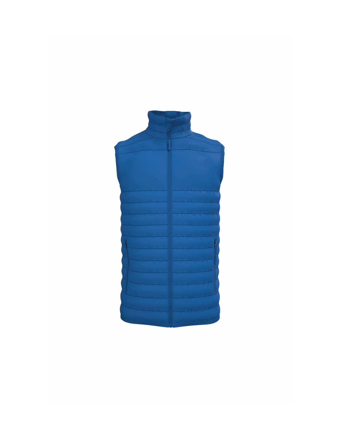 Coupe droite. Col montant. Deux poches côtés doublées en 290T, avec zips en nylon et tire-zips ton sur ton. Deux poches intérieures. Fermeture zippée en nylon ton sur ton avec protège-menton et tire-zip. Matelassage horizontal. Bande de matelassage plus large de 11 cm à l'avant et de 14,5 cm dans le dos, favorisant la personnalisation. Finition biais élastiqué emmanchures et bas de vêtement ton sur ton. Boucle d’accroche intérieure col. Produit compressible dans son sac de rangement. Etiquette de marque détachable. Garniture injectée : le grammage peut varier selon les zones du vêtement. Le poids total est indicatif.