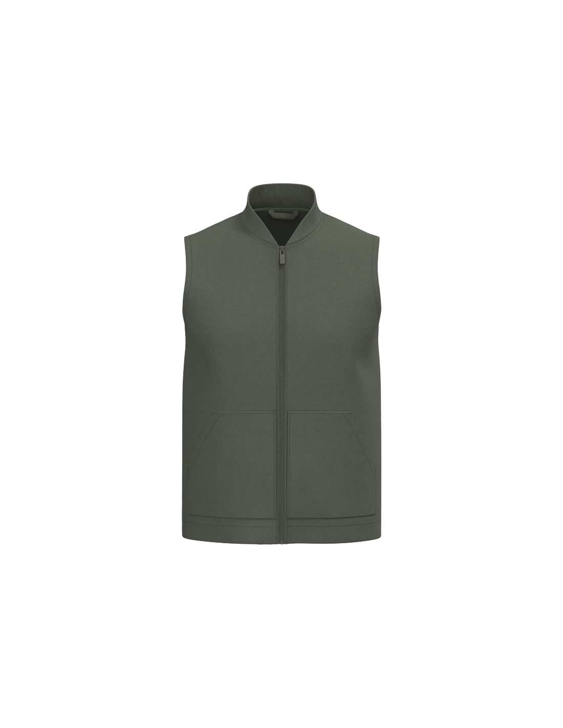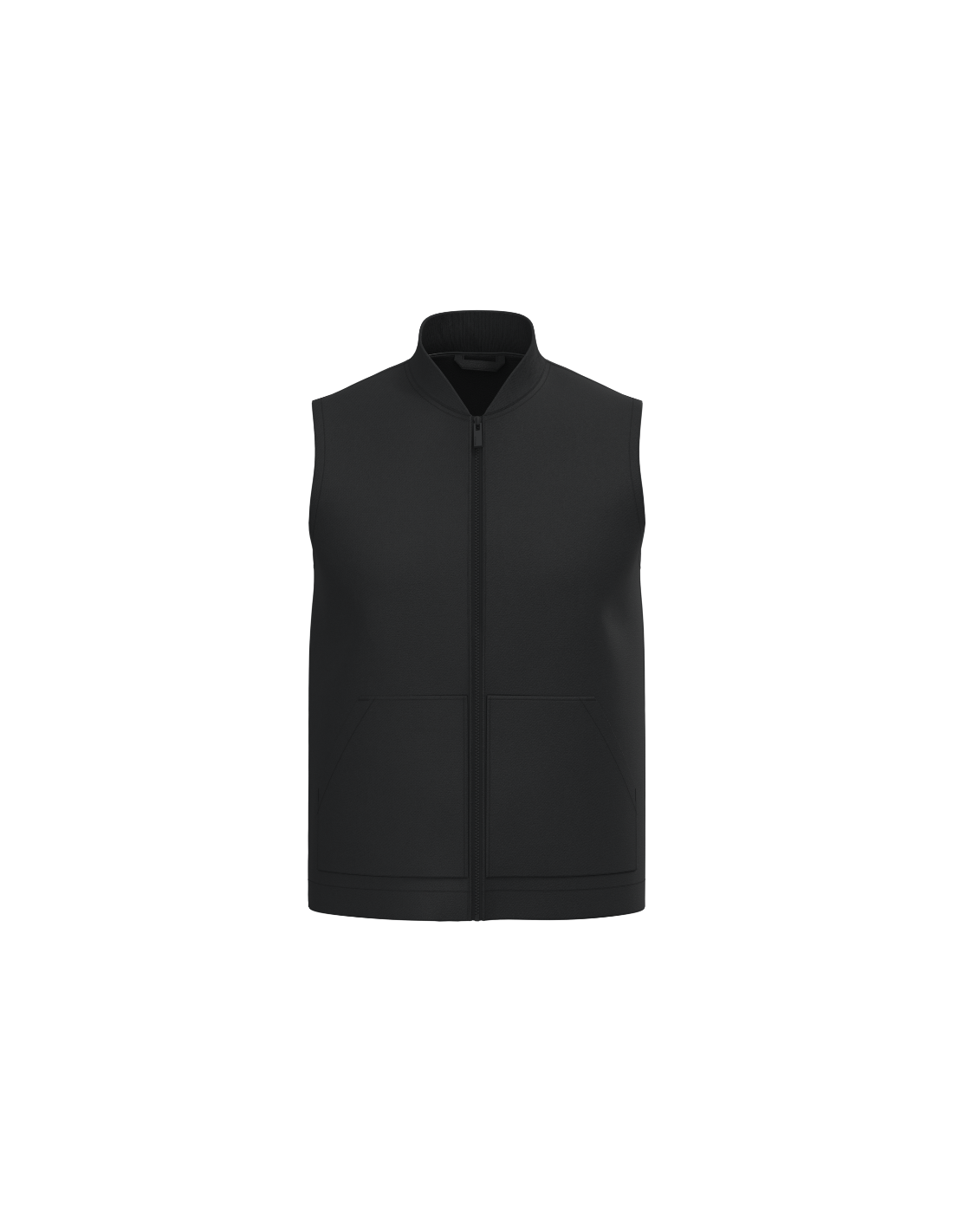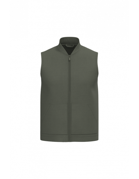 Coupe standard. Tissu en twill. Veste sans manches rembourrée avec polyester recyclé. Col teddy en bord côte 1 x 1. Poche kangourou. Fermeture devant avec zip en plastique et tirette en métal recyclé ton sur ton. Doublure matelassée ton sur ton. Poche intérieure avec velcro, côté droit au porté. Patch de personnalisation en matière principale avec bride de suspension intérieur de vêtement. Zip de personnalisation poitrine et bas de vêtement.