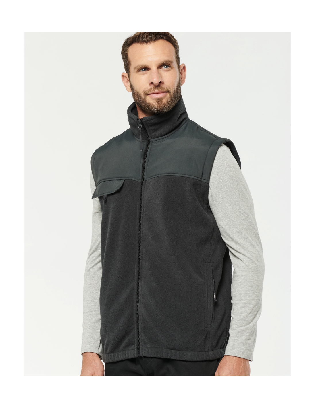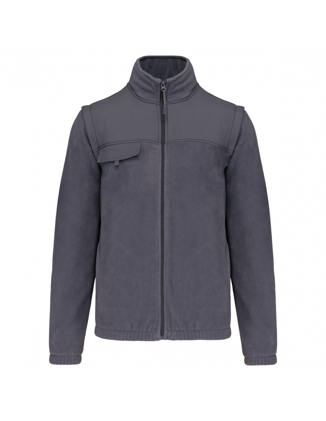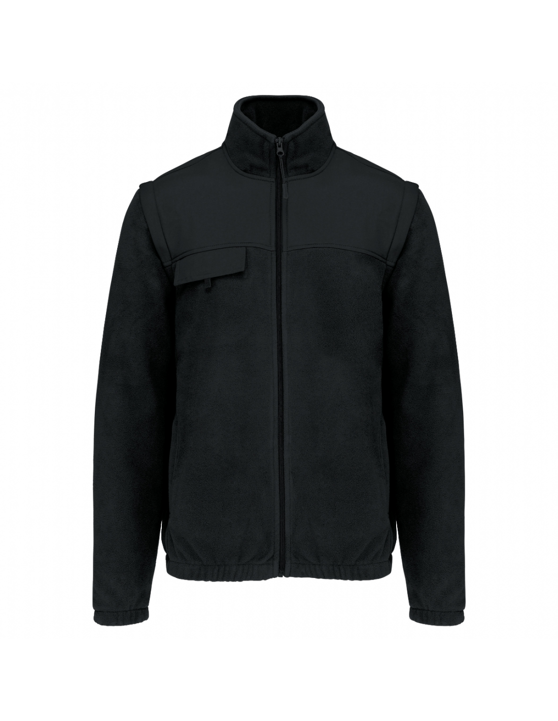 Produit 2 en 1. 2 poches avant zippées et 1 poche poitrine avec rabat et bande auto-agrippante. Larges protections ton sur ton aux épaules et avant-bras. Personnalisation facilitée avant et dos. Manches amovibles doublées polyester pour plus de confort. Poignets et bas de vêtement élastiqués.