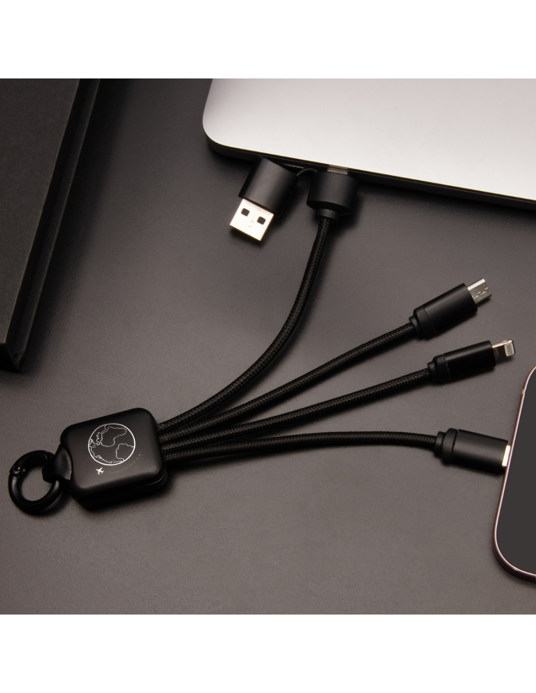 Câble 5-en-1 avec double logo lumineux recto/verso avec double entrée USB A et USB C.