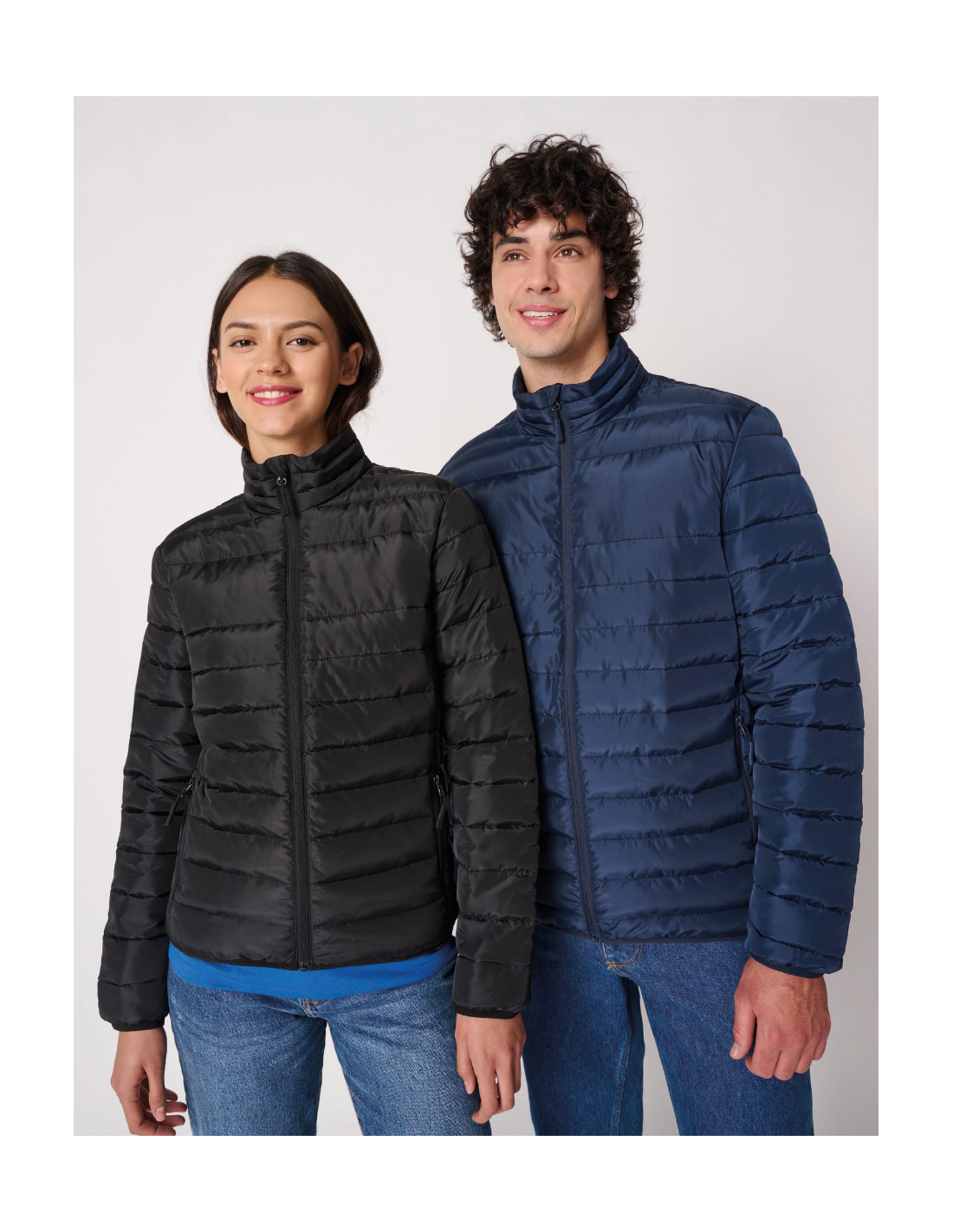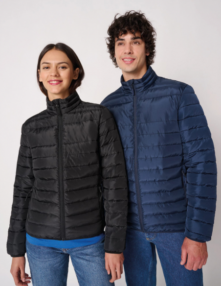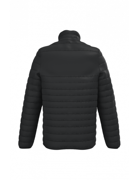 Coupe droite. Col montant. Deux poches côtés doublées en 290T, avec zips en nylon et tire-zips ton sur ton. Deux poches intérieures. Fermeture zippée en nylon ton sur ton avec protège menton et tire-zip. Matelassage horizontal. Bande de matelassage plus large de 11 cm à l'avant et de 14,5 cm dans le dos, favorisant la personnalisation. Finition biais élastiqué bas de manches et bas de vêtement ton sur ton. Boucle d’accroche intérieure col. Produit compressible dans son sac de rangement. Etiquette de marque détachable.