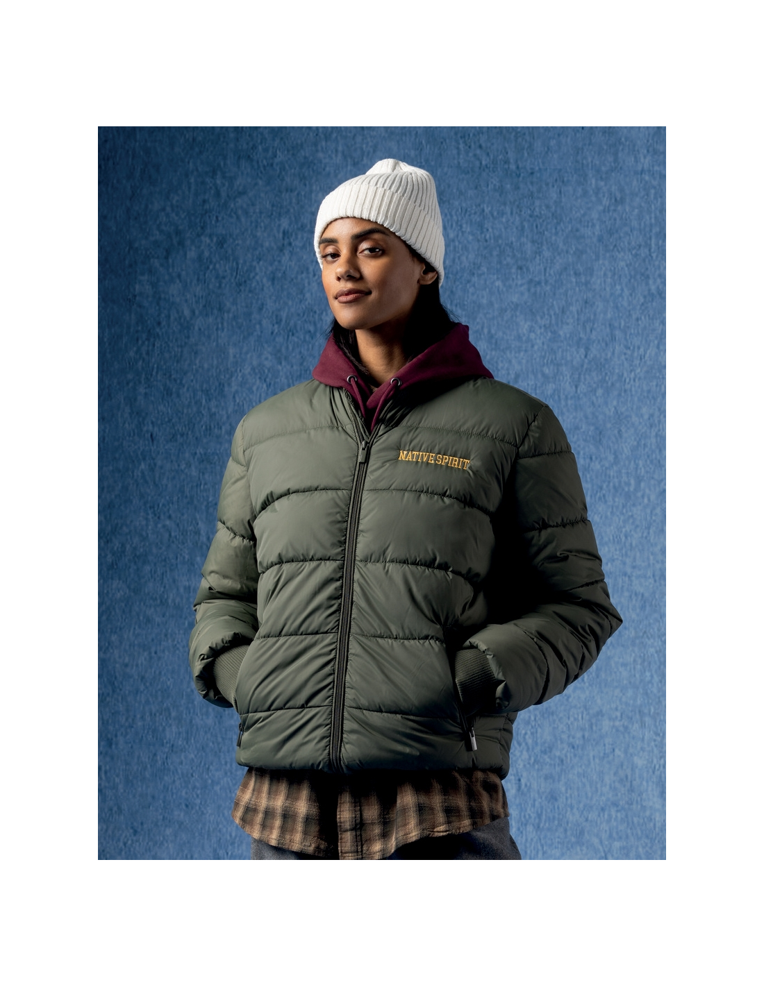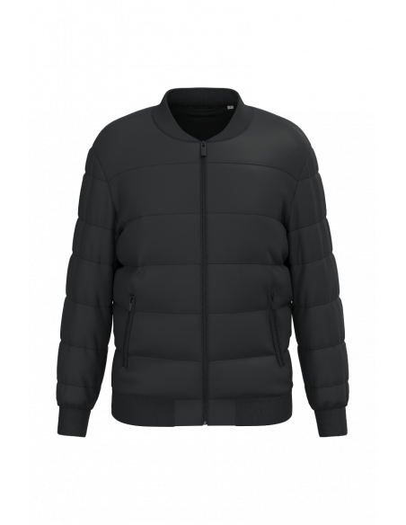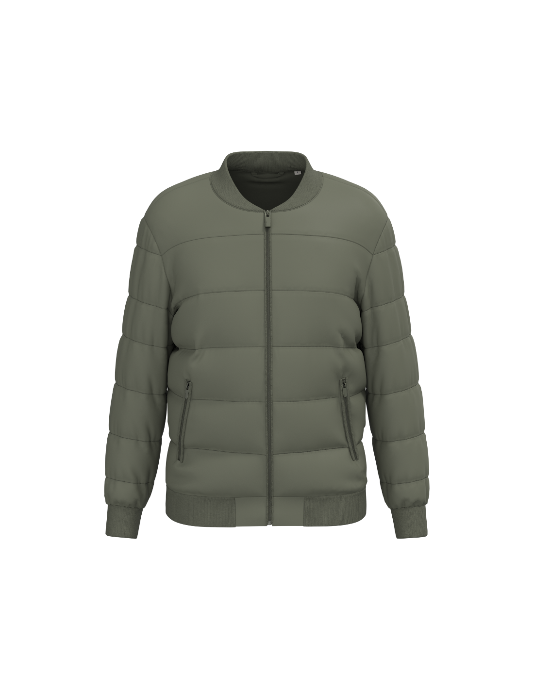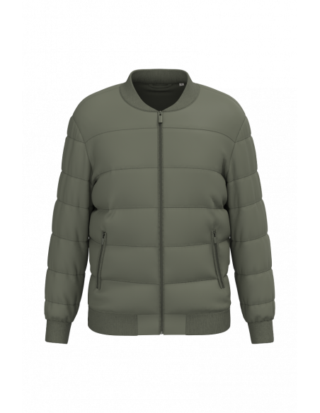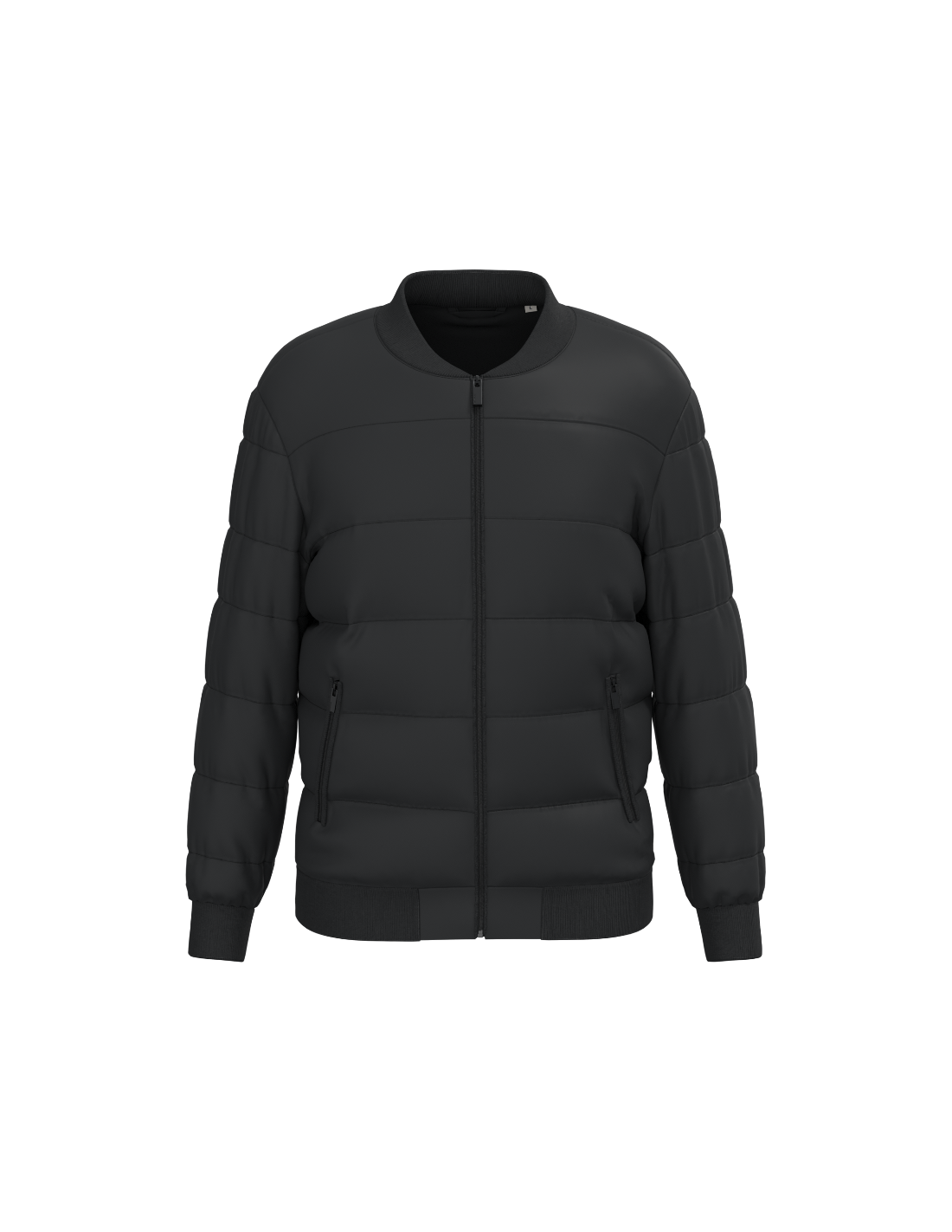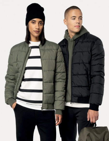 Polyamide pongé. Coupe standard. Construction 300T. Tissu avec enduction. Tissu déperlant niveau 4 et coupe-vent 3 mm/s. Veste matelassée rembourrée en polyester recyclé post-consumer. Col teddy. Bord côte 2 x 2 ton sur ton au col, bas de manches et bas de vêtement. Fermeture zippée milieu devant et poches devant en nylon recyclé avec biais de finition ton sur ton. Poche intérieure passepoilée zippée côté cœur au porté. Patch de personnalisation en matière principale avec bride de suspension à l’intérieur du vêtement. Zip de personnalisation poitrine et bas de vêtement. Aucune surpiqûre sur le haut du devant et du dos pour faciliter la personnalisation.