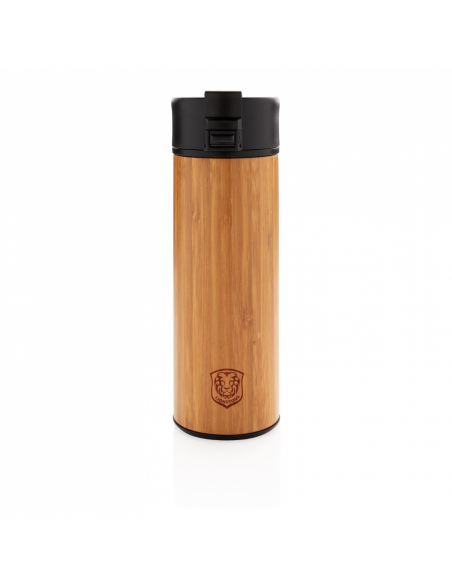 Mug étanche 450 ml à double paroi en acier inoxydable, 201 à l'extérieur et 304 à l'intérieur. Le bambou lui donne un aspect intemporel et une prise en main confortable. Garde les boissons chaudes jusqu'à 5h et froides jusqu'à 15h. Modèle déposé®