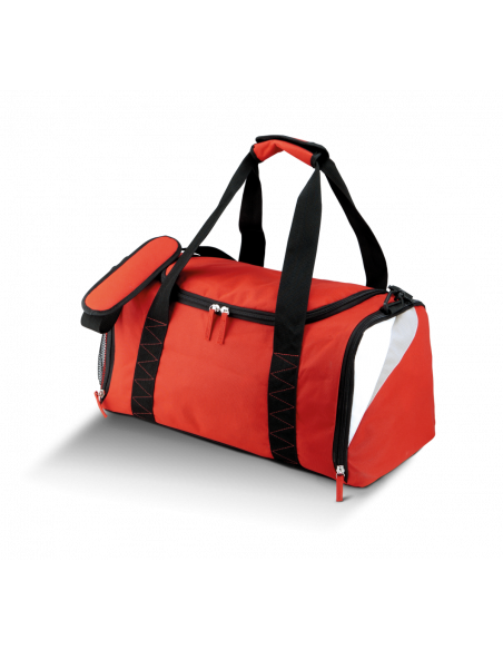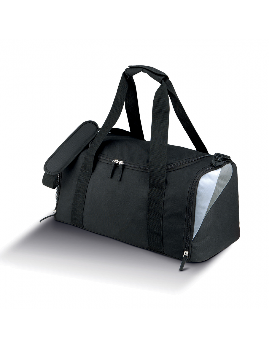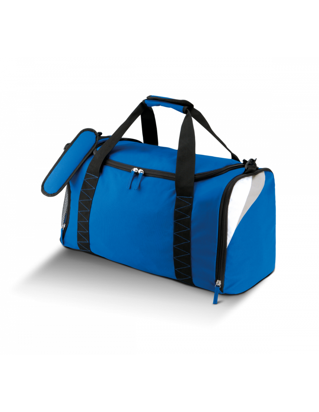 Sac de sport/sports collectifs grande taille 62 cm, 2 poches côté : une pour rangement chaussures, une poche côté extérieure en filet. Lanière d'épaule amovible et ajustable.