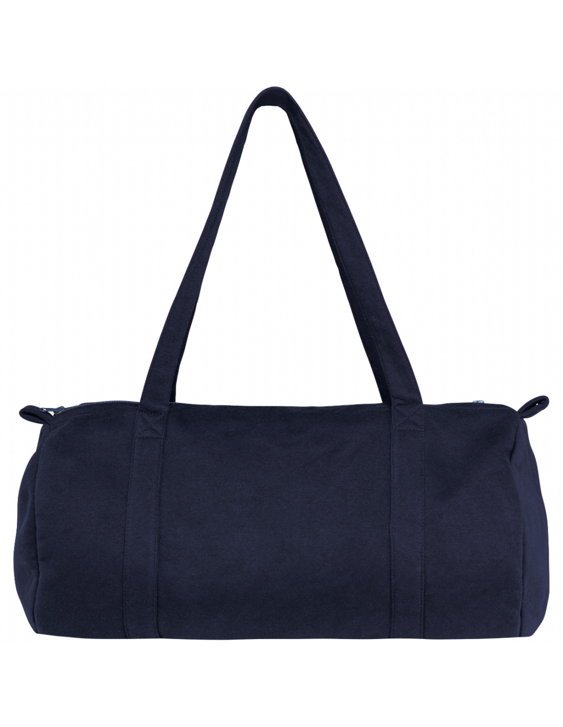 Molleton gratté 3 fils LSF (Low Shrinkage Fleece : molleton pré-rétréci). Lavé aux enzymes. Ouverture à double zip. Doublé avec poche intérieure zippée et zip pour la personnalisation en nylon recyclé. Zip d’ouverture en métal recyclé. Anses renforcées.