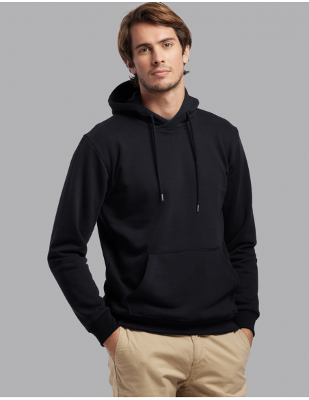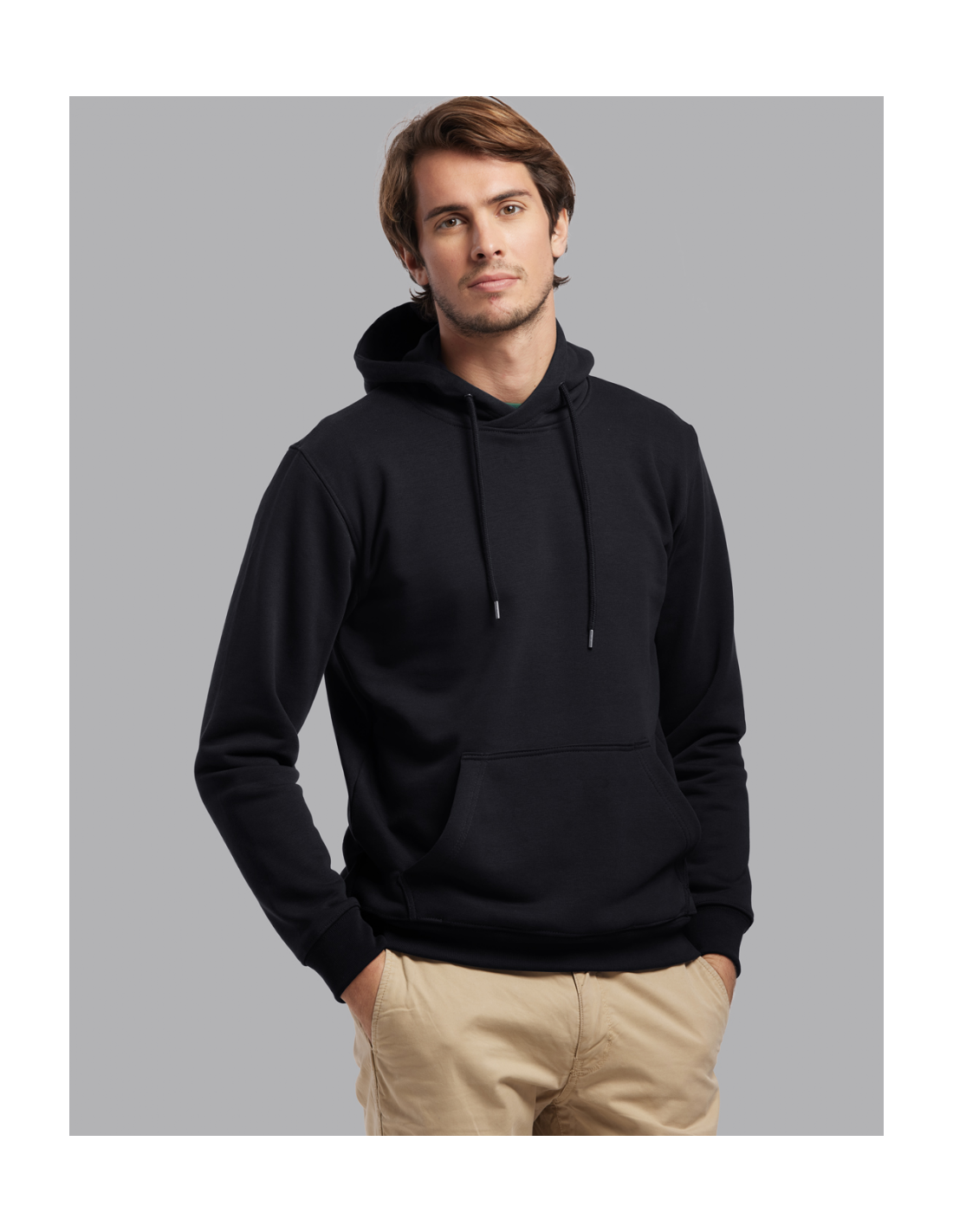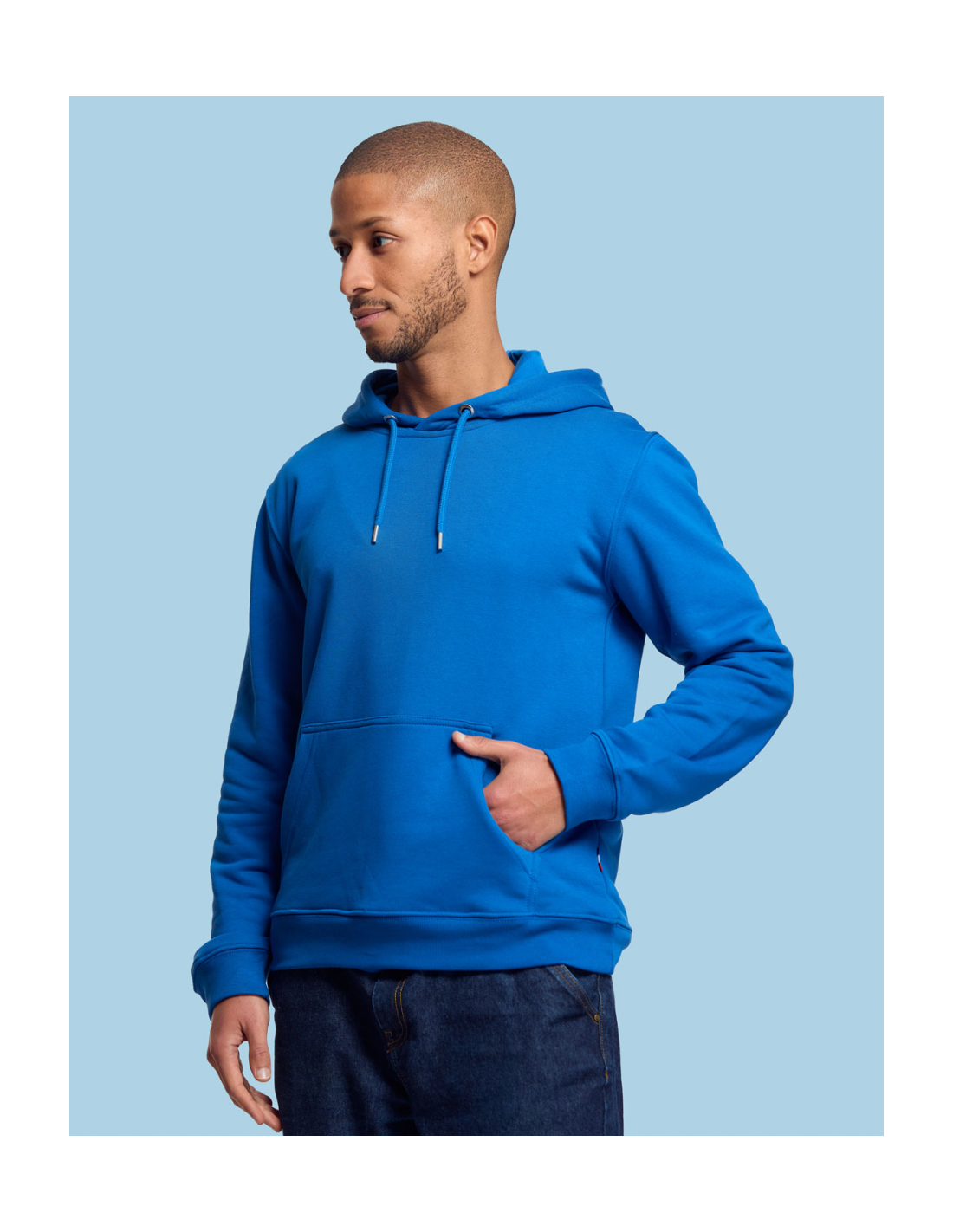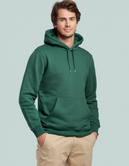Hoodie unisexe Made in France. Matière Terry 350g/m² lavée, non grattée pour éviter le boulochage + traitement silicone pour améliorer la longévité du vêtement. Capuche doublée dans la matière. Cordon ton sur ton avec embout métal. Col en demi lune dans la matière extérieure. Poche ventrale kangourou. Bande de propreté au col. Double piqure en bas de corps et de manches. Toucher soyeux.
